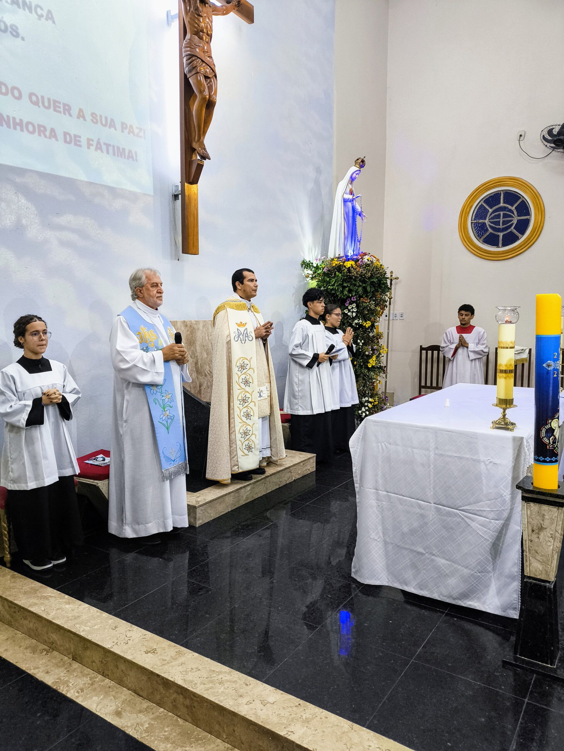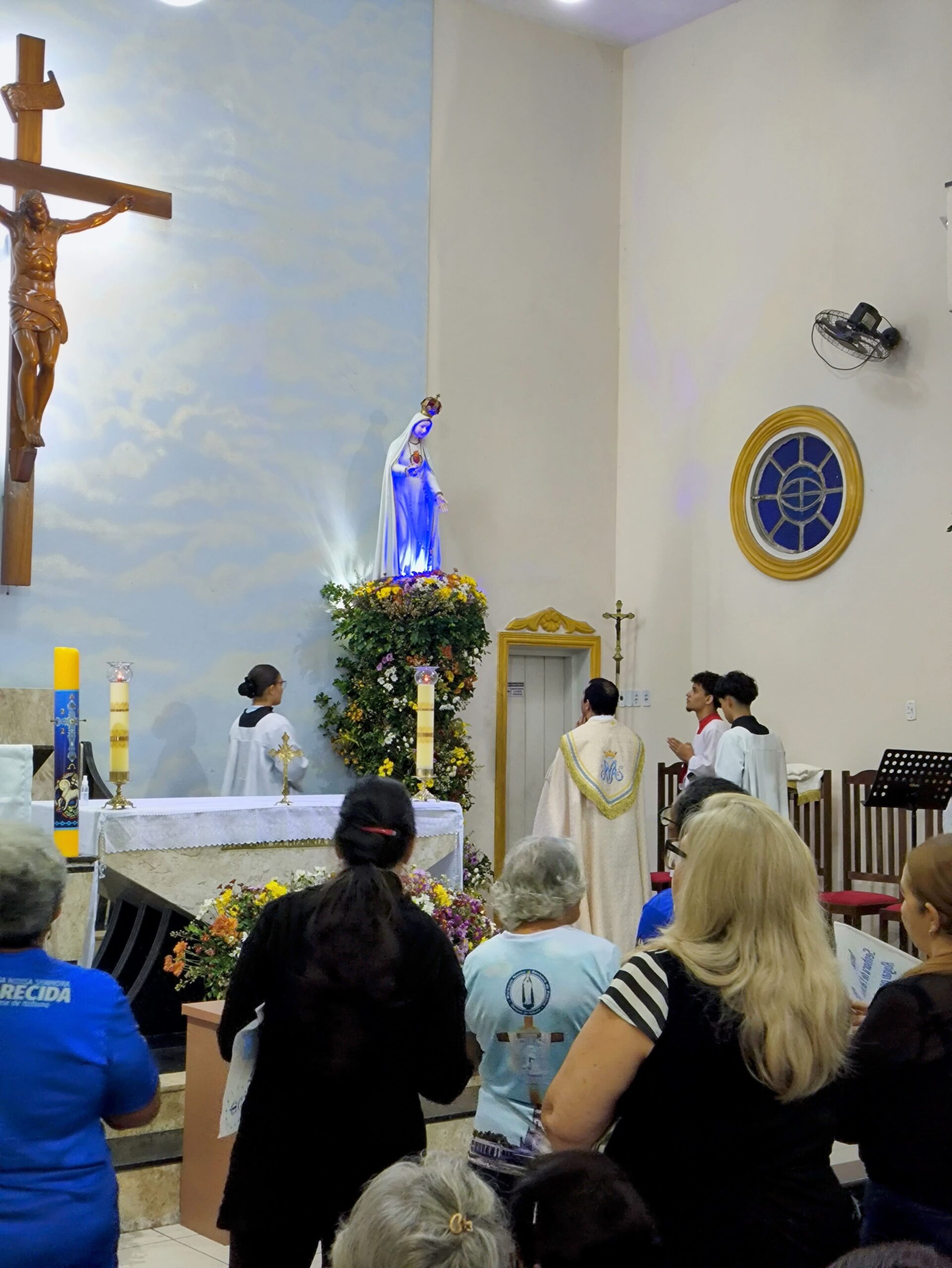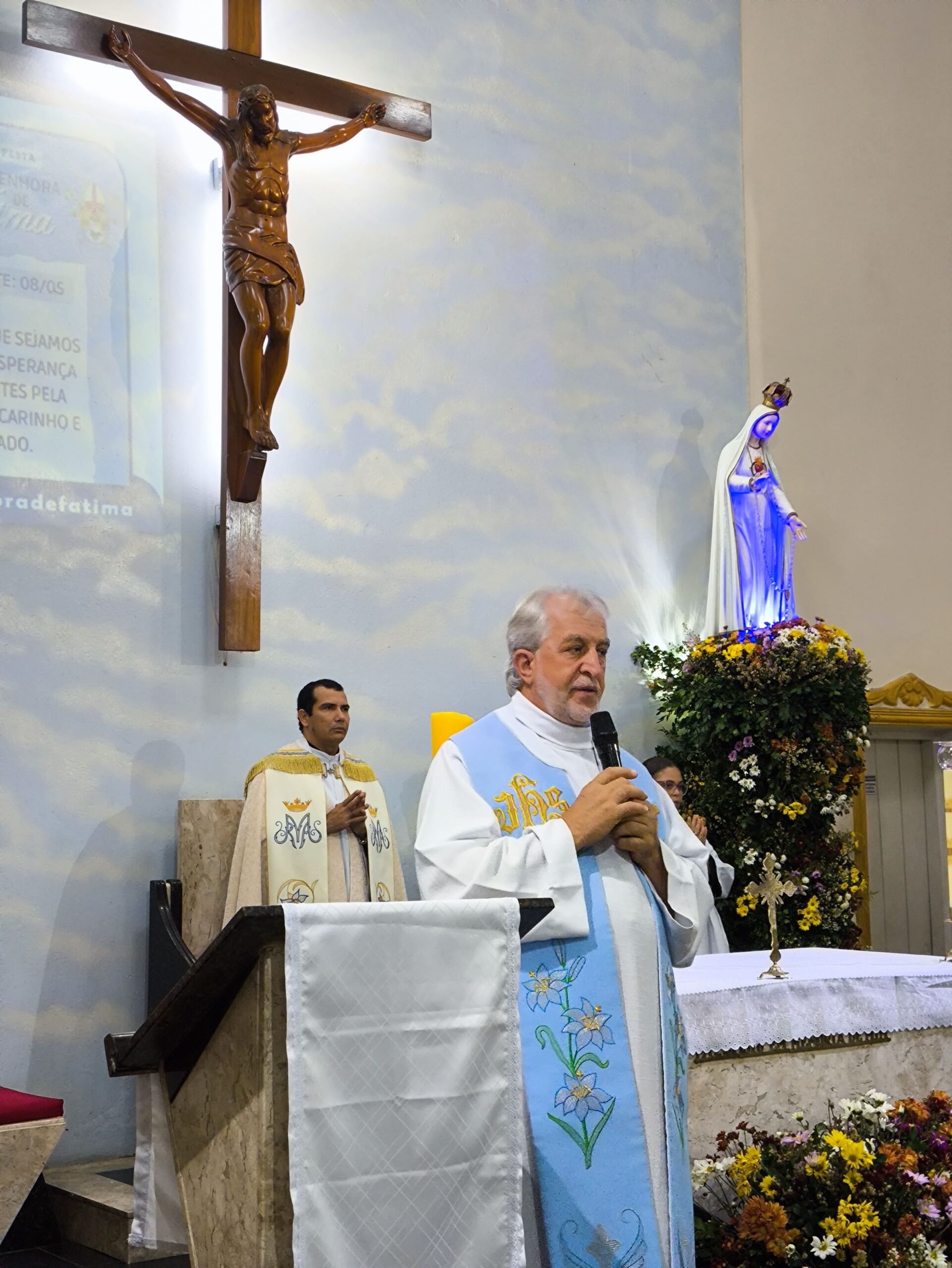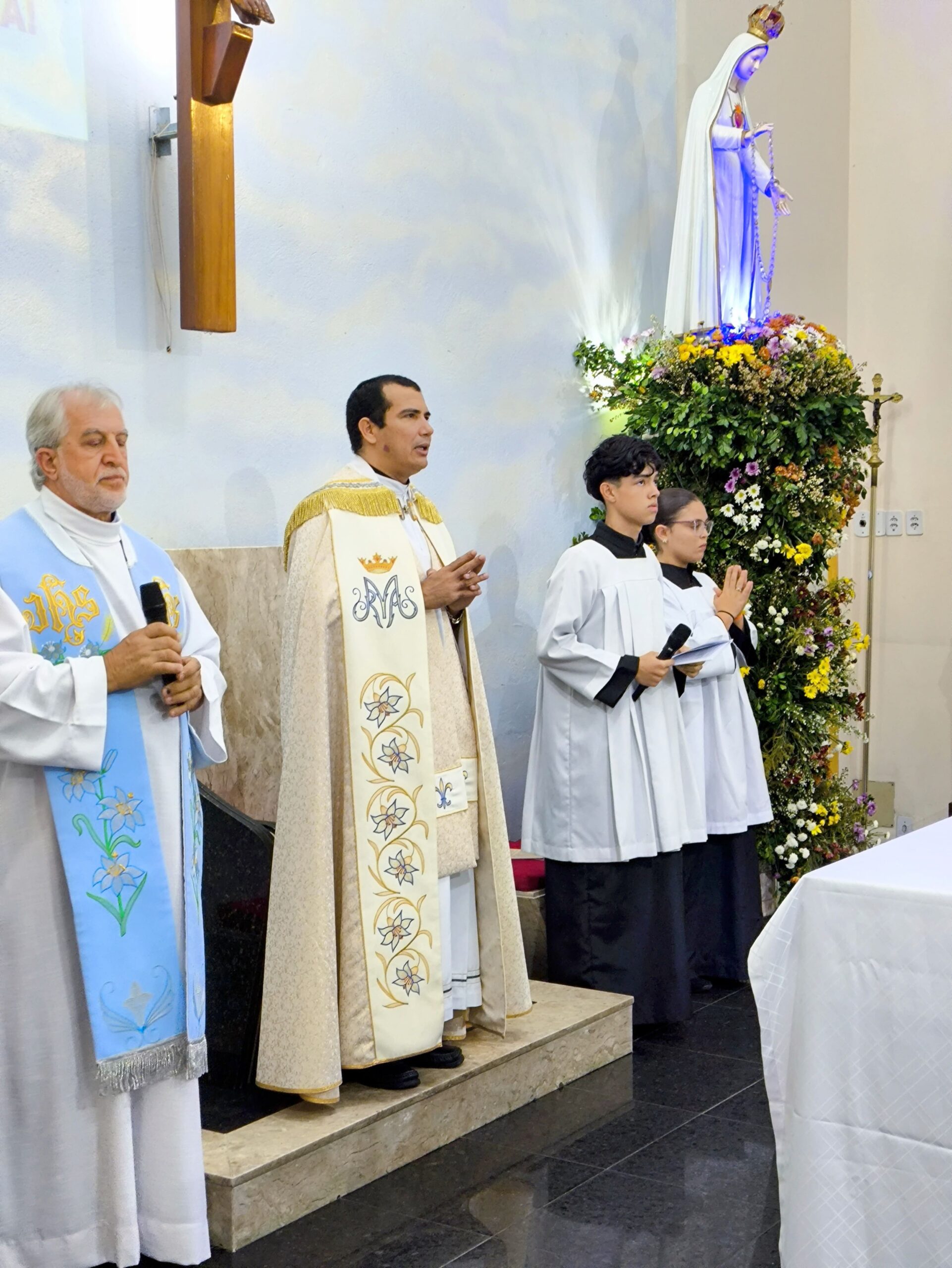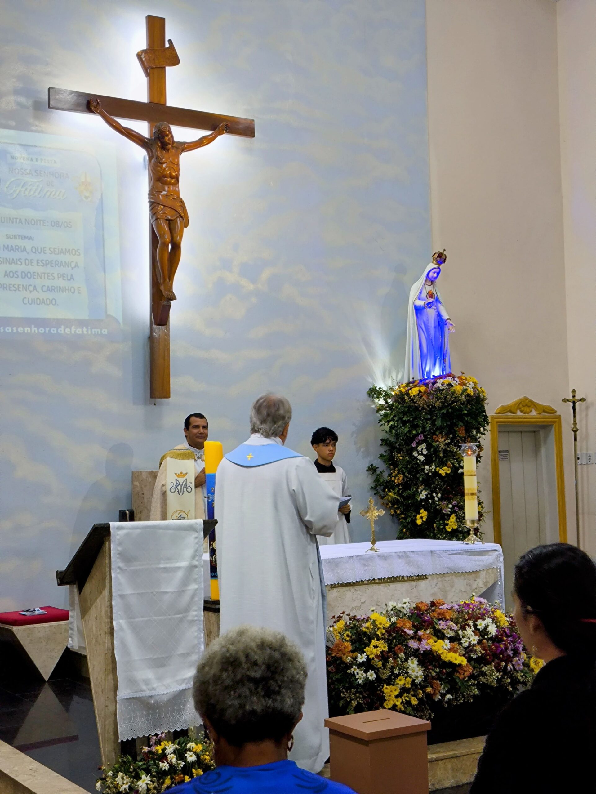 Em 8 de maio de 2025, a Quinta Noite da Novena de Nossa Senhora de Fátima aqueceu os corações na paróquia, sob o tema central “Como Maria, somos missionários da esperança”. A comunidade se aprofundou no subtema “Ó Maria, que sejamos sinais de esperança aos doentes pela presença, carinho e cuidado”, um convite especial à compaixão e ao serviço.