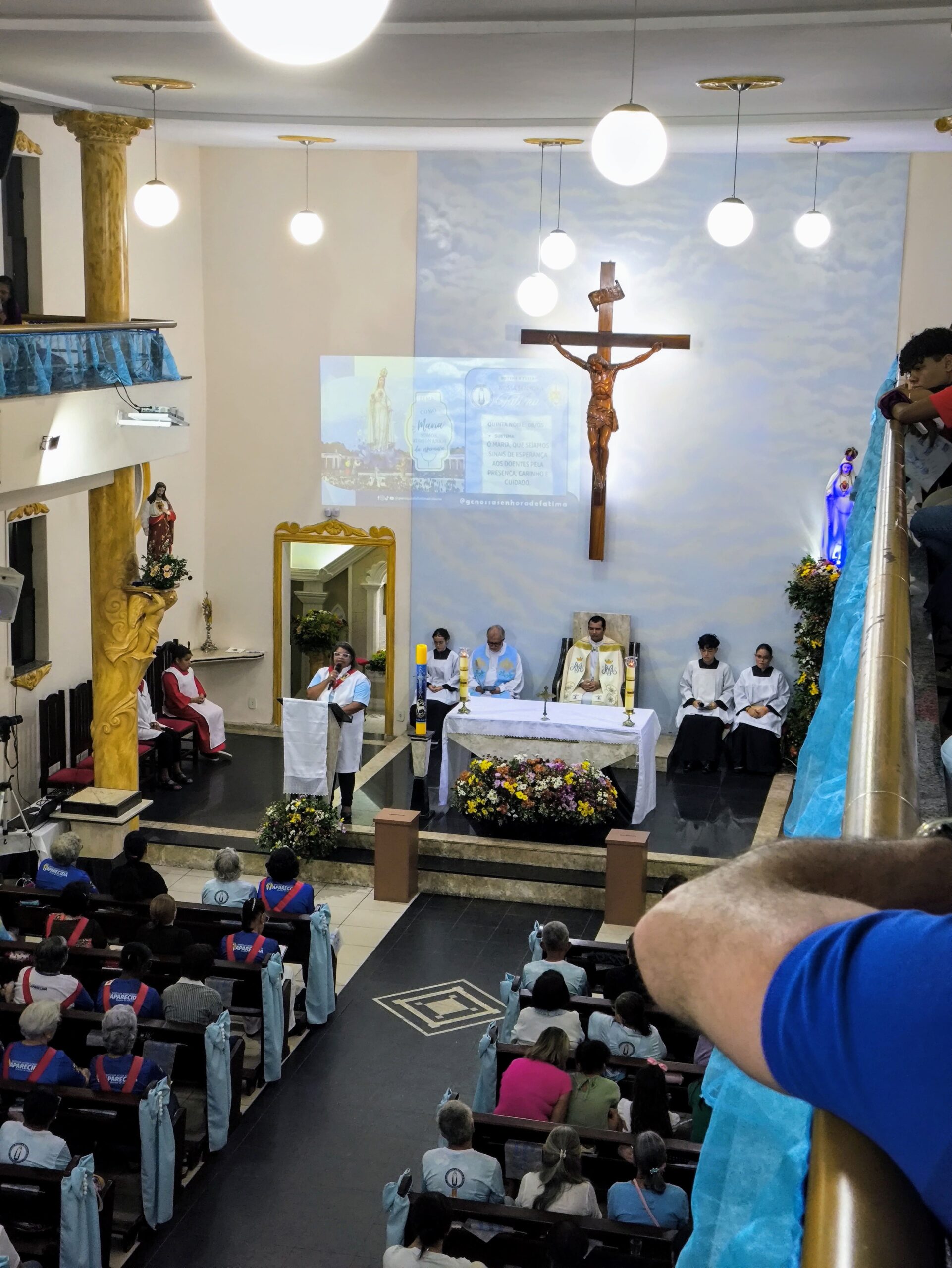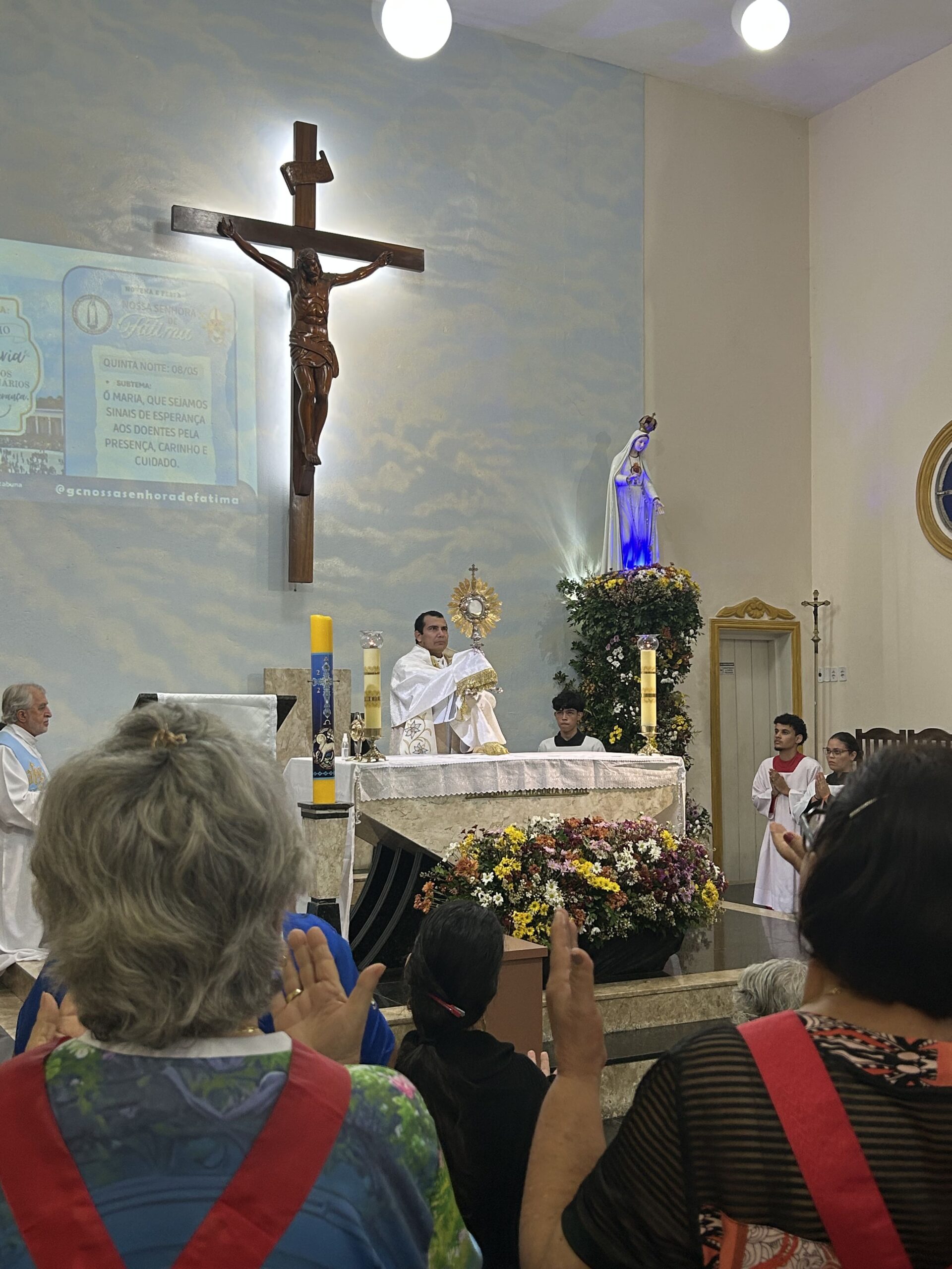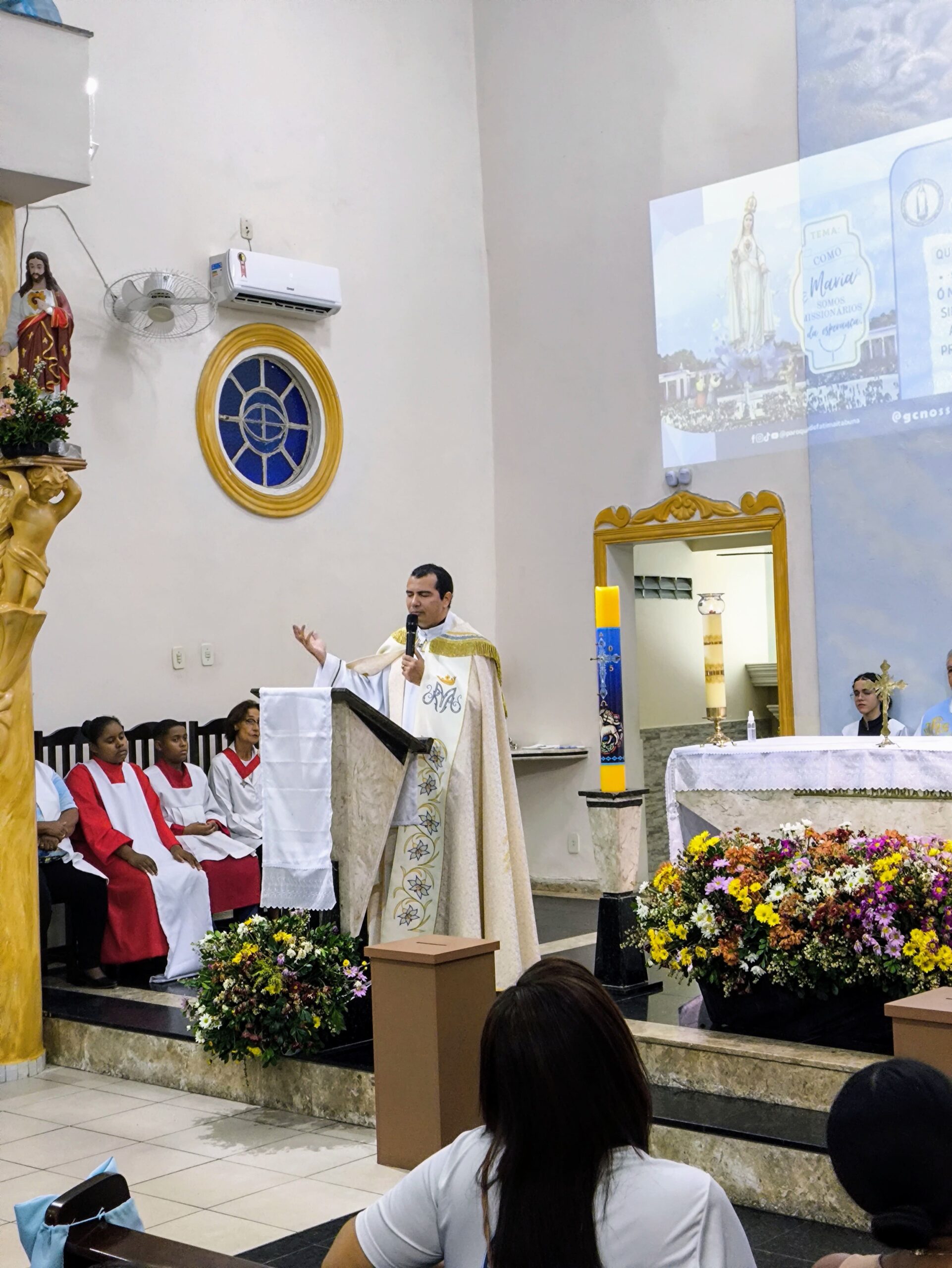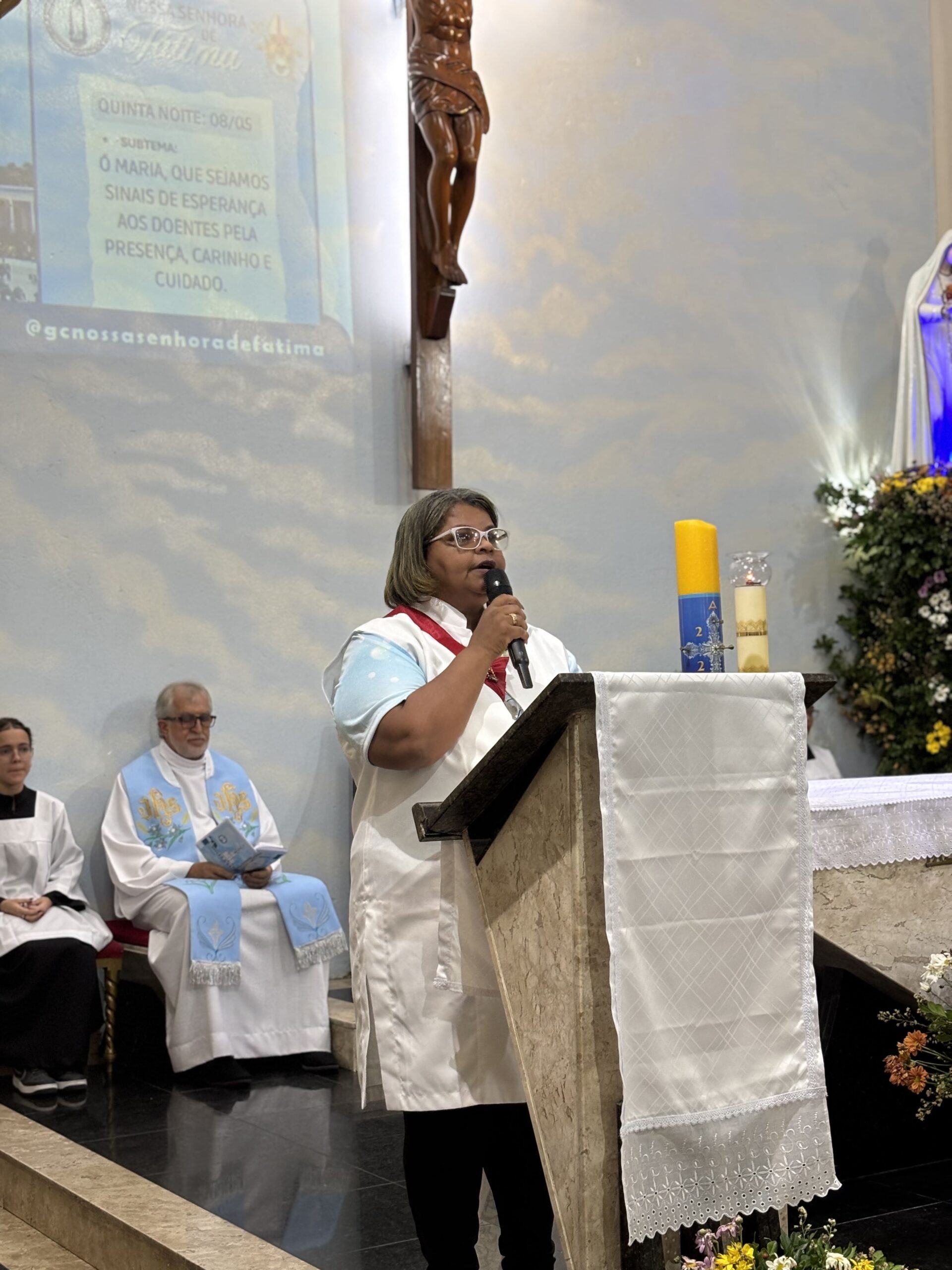 Em 8 de maio de 2025, a Quinta Noite da Novena de Nossa Senhora de Fátima aqueceu os corações na paróquia, sob o tema central “Como Maria, somos missionários da esperança”. A comunidade se aprofundou no subtema “Ó Maria, que sejamos sinais de esperança aos doentes pela presença, carinho e cuidado”, um convite especial à compaixão e ao serviço.