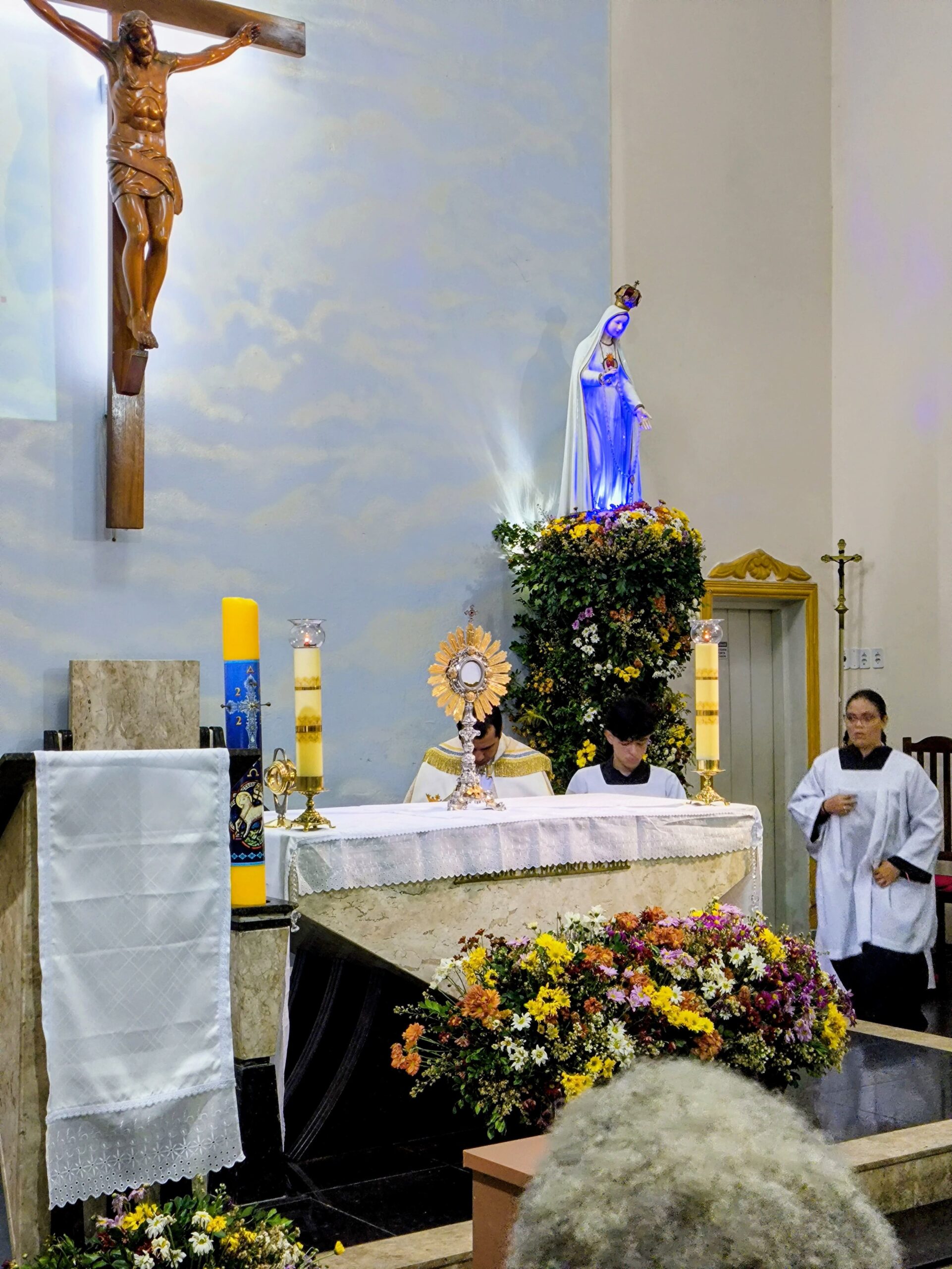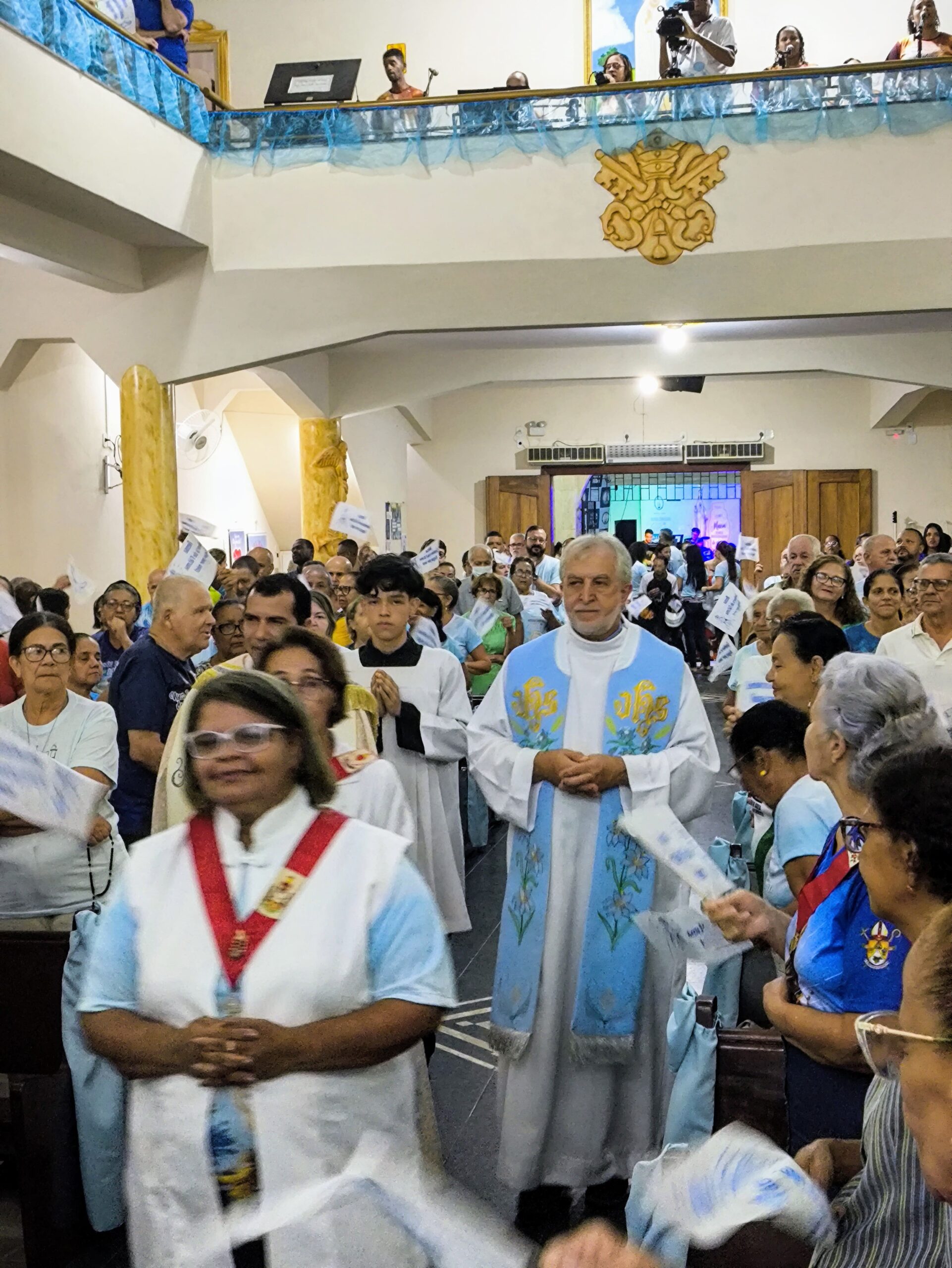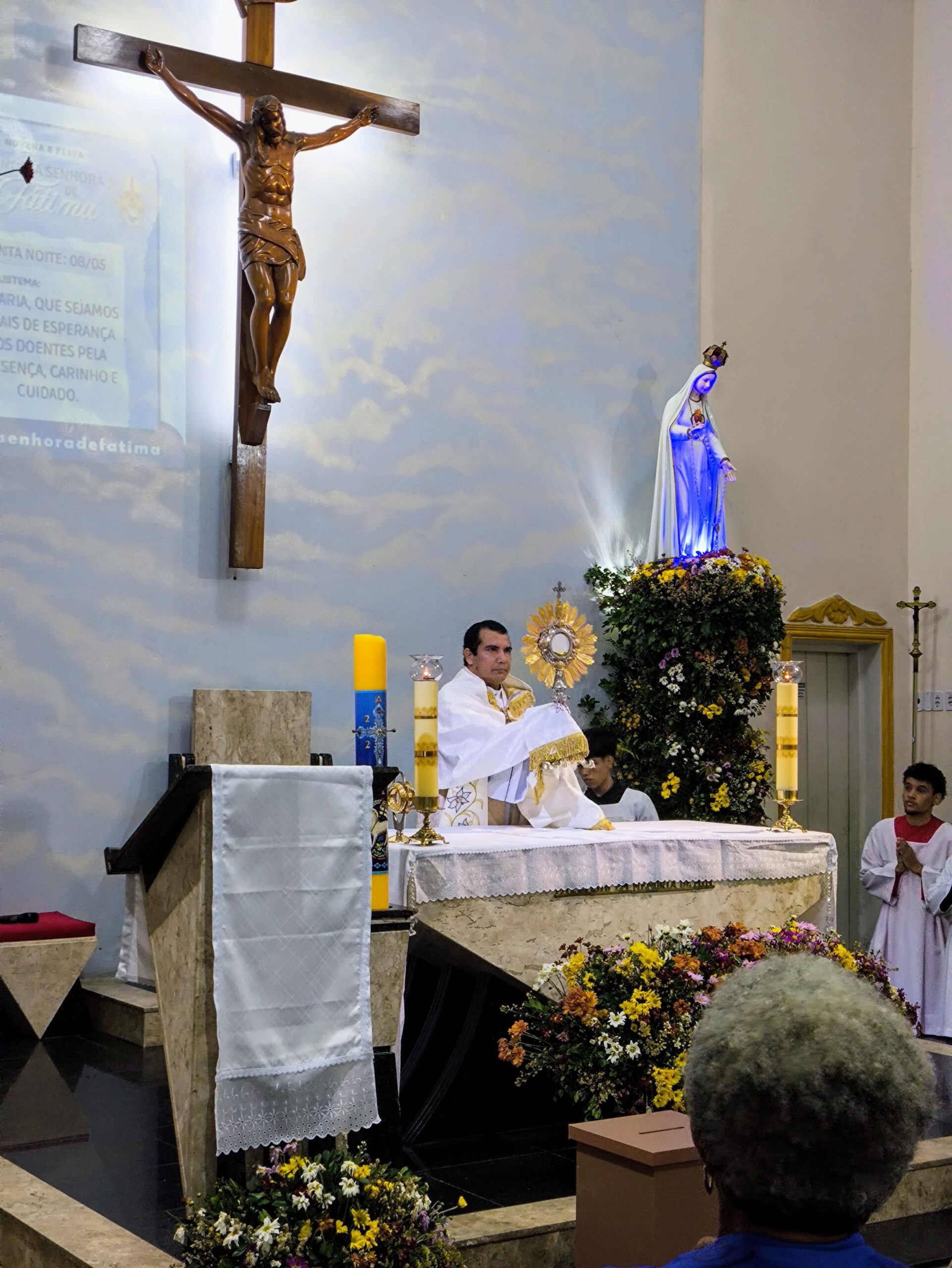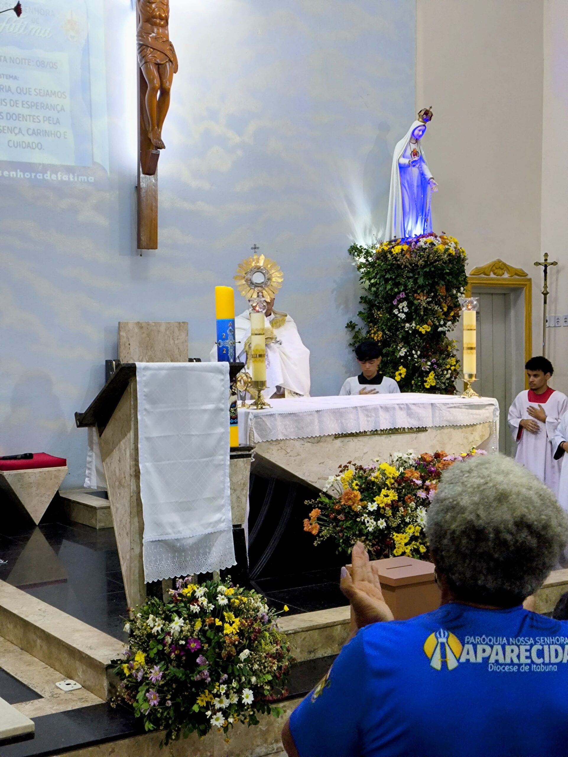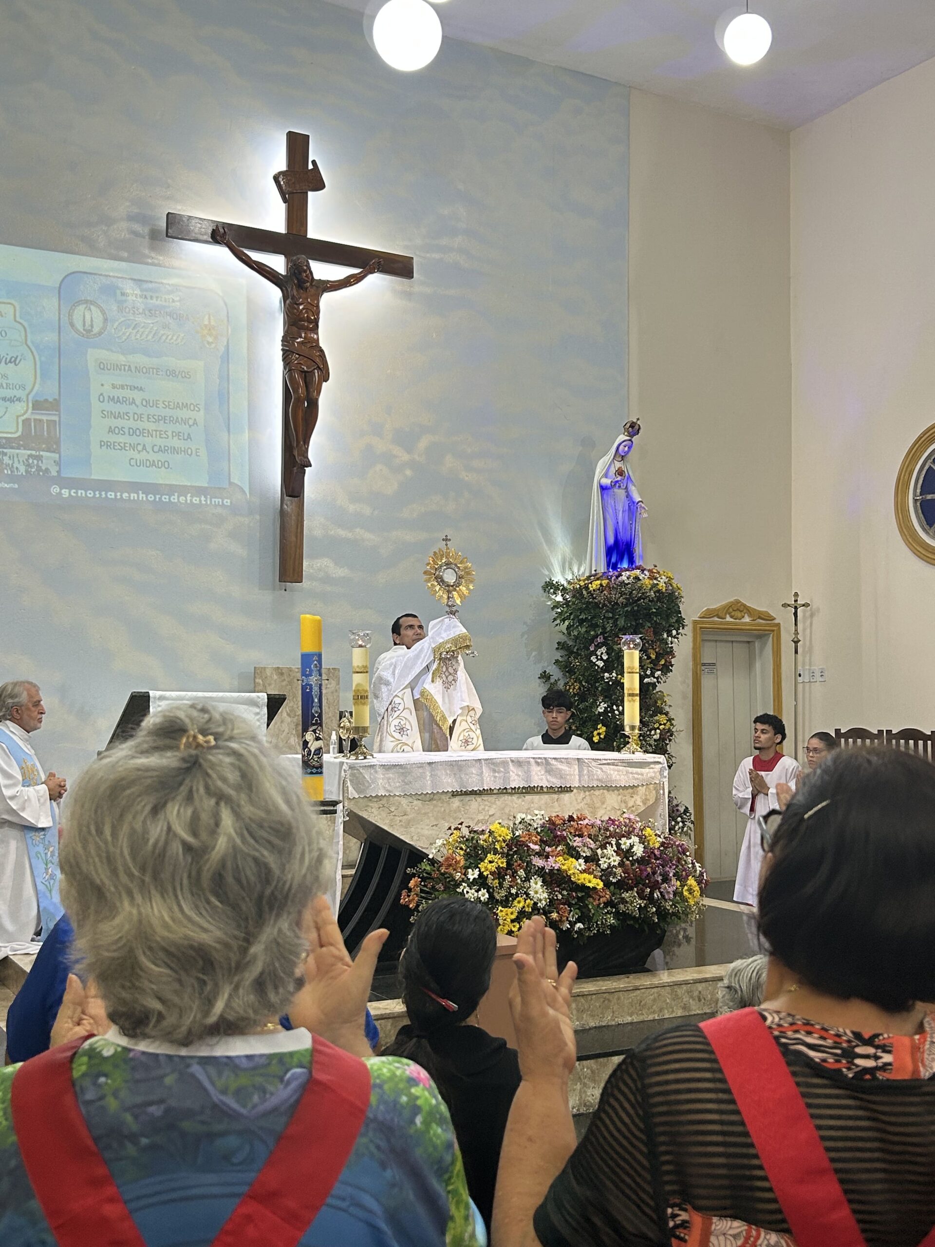 Em 8 de maio de 2025, a Quinta Noite da Novena de Nossa Senhora de Fátima aqueceu os corações na paróquia, sob o tema central “Como Maria, somos missionários da esperança”. A comunidade se aprofundou no subtema “Ó Maria, que sejamos sinais de esperança aos doentes pela presença, carinho e cuidado”, um convite especial à compaixão e ao serviço.