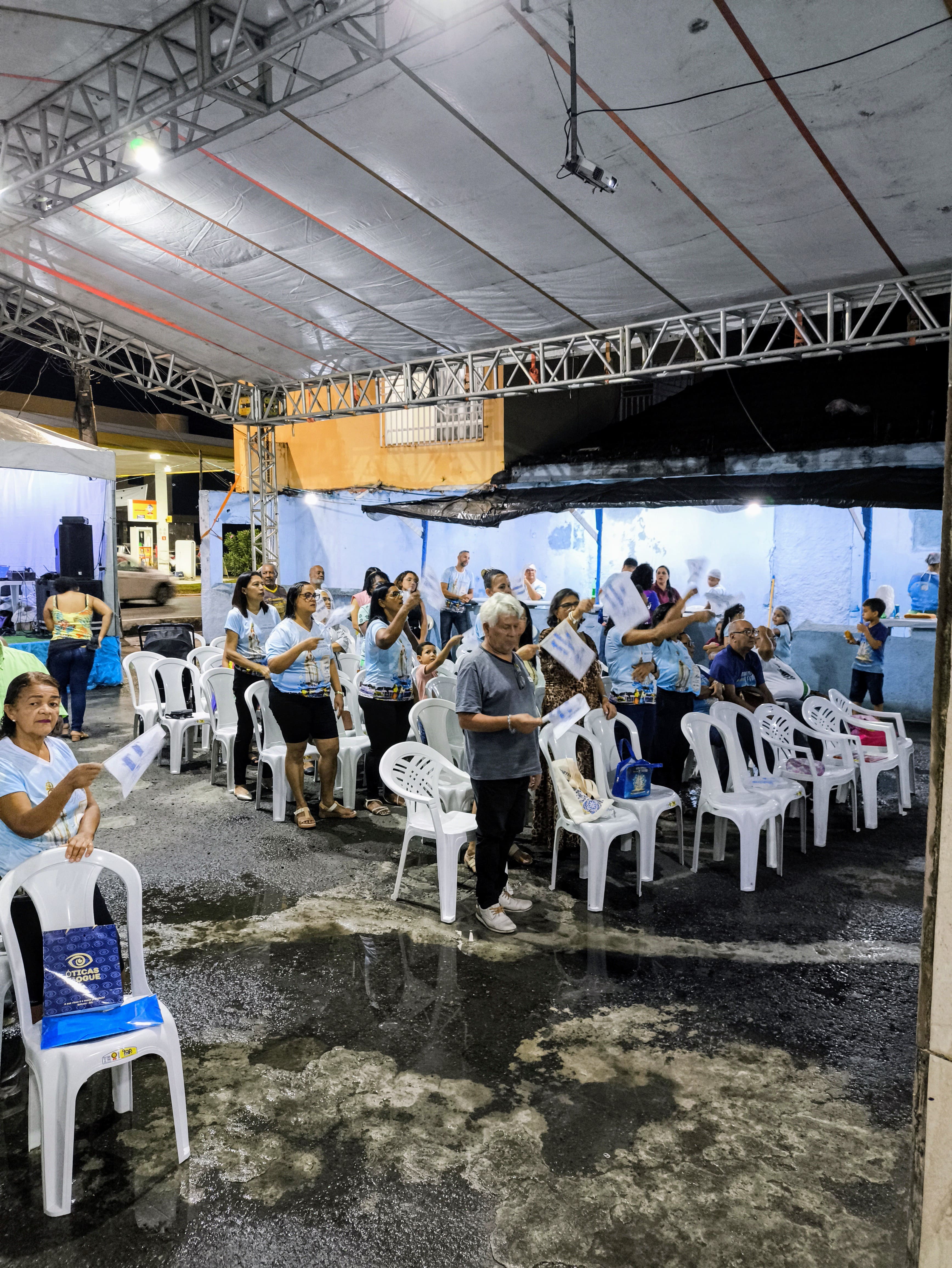 Após a homilia, tivemos a partilha da Palavra e reflexão do tema. A noite seguiu com a coleta, a Homenagem a Nossa Senhora, os sorteios da Imagem Peregrina, e dos brindes . Os avisos prepararam a comunidade para a sexta noite, e a confraternização na quermesse fortaleceu os laços fraternos. A Adoração ao Santíssimo Sacramento encerrou a noite com um profundo momento de intimidade com Cristo.