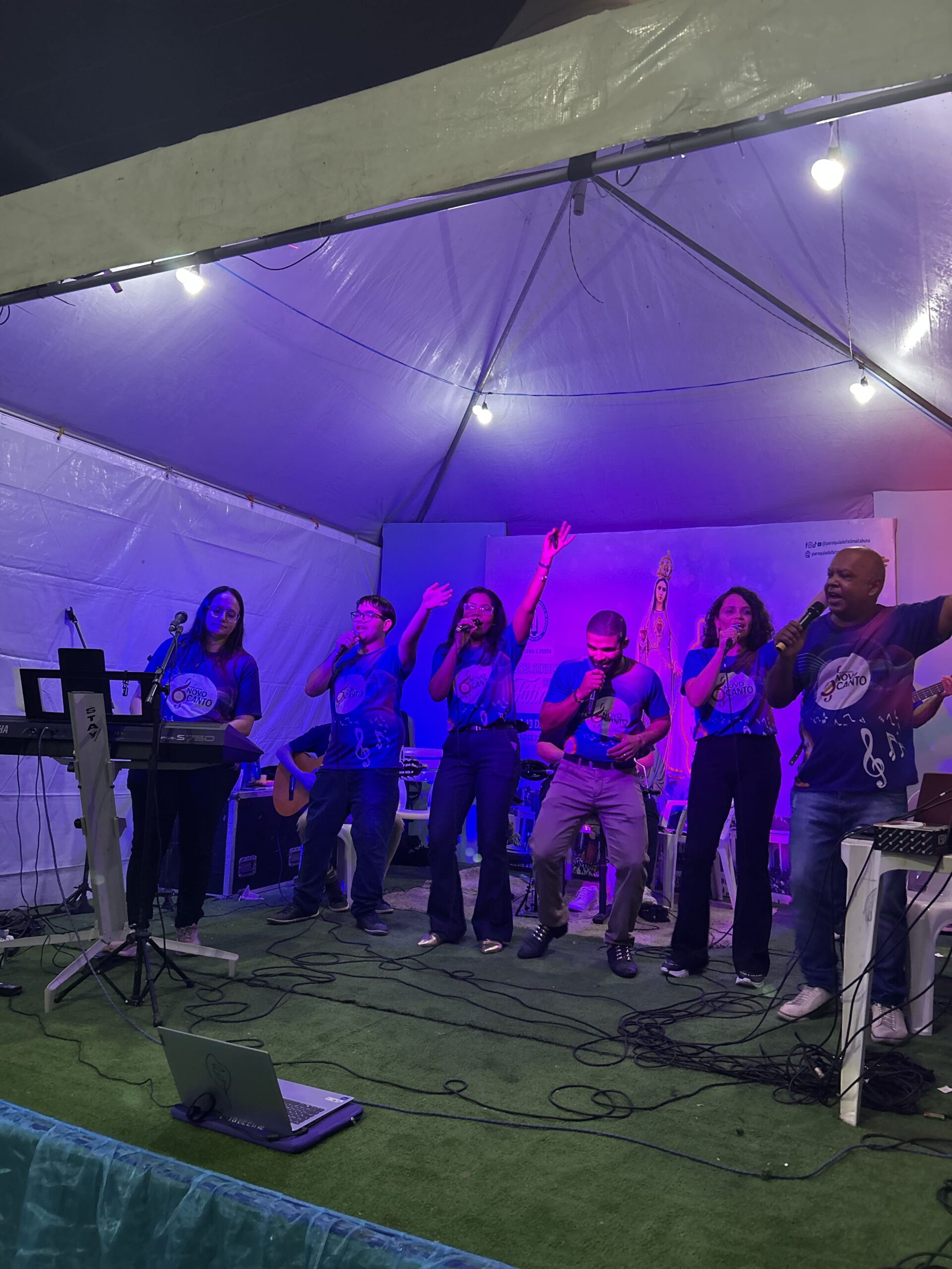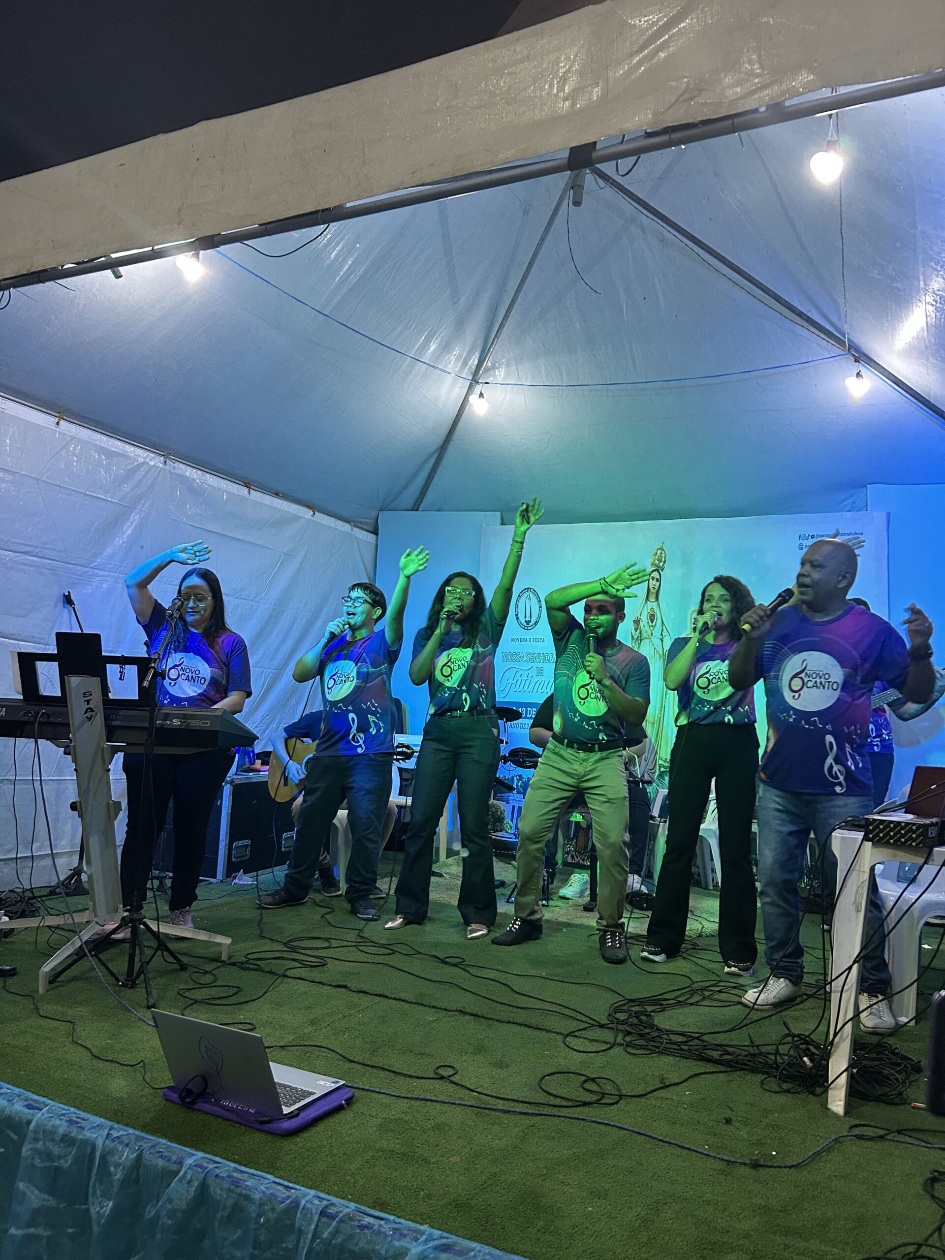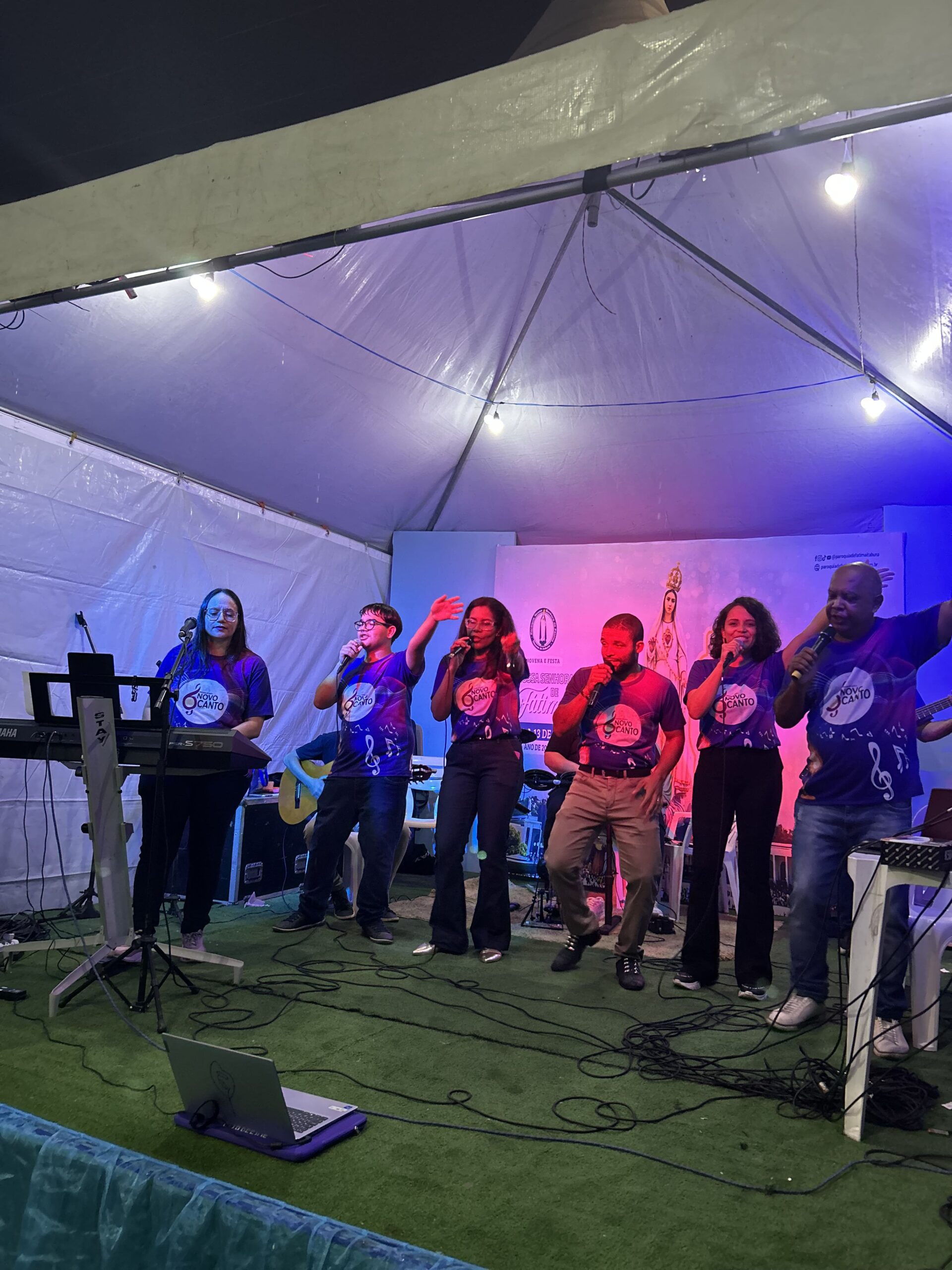O Momento Devocional “Rezando com Maria” foi particularmente tocante, com a oração específica da noite: “Ó Maria, Mãe divina e fonte de bondade, pedimos que inspire em nós um espírito de compaixão e cuidado para com os doentes… e que sejamos sinais de esperança para os enfermos, levando-lhes conforto, carinho e a certeza de que não estão sozinhos.”. A Ladainha de Nossa Senhora foi rezada com fervor, unindo a comunidade em intercessão.