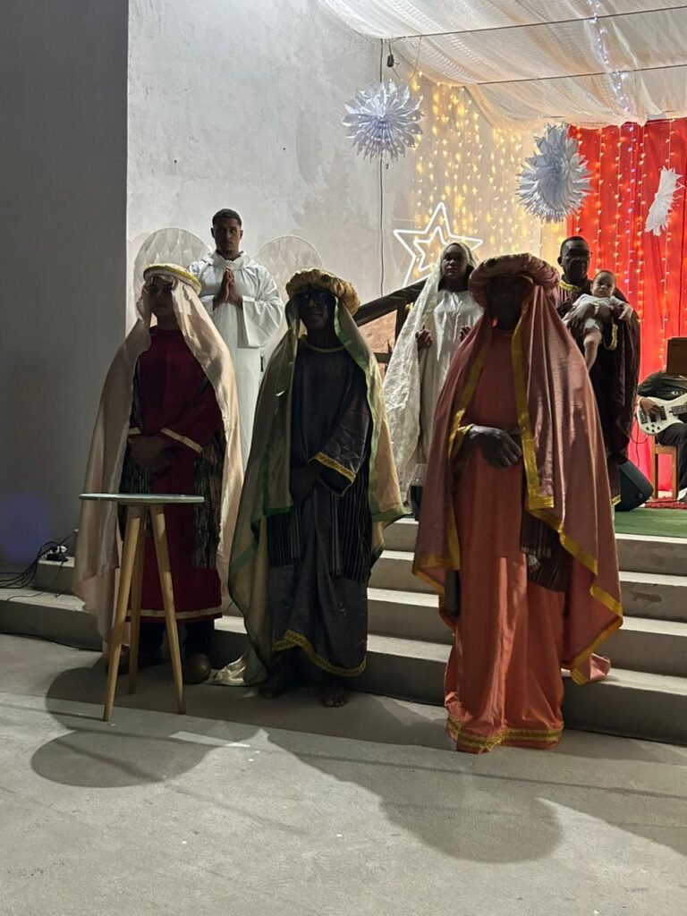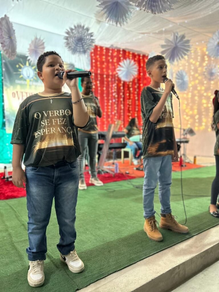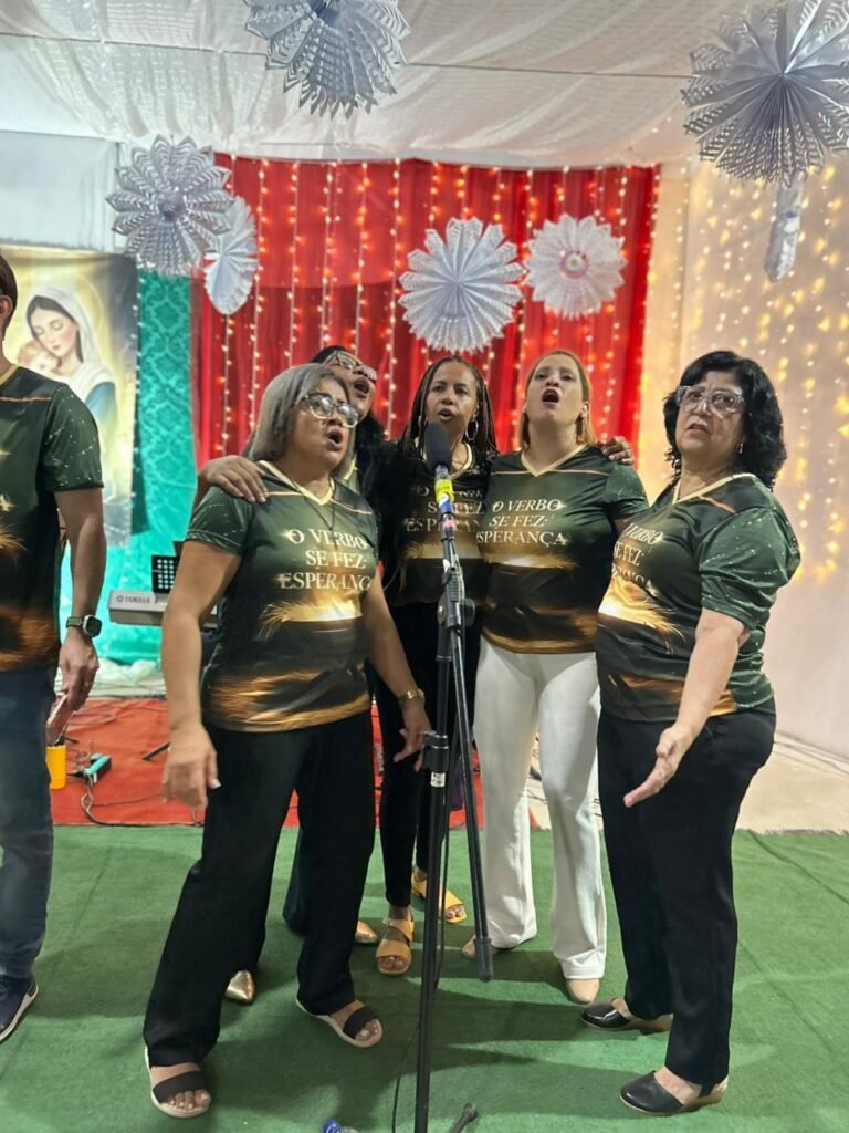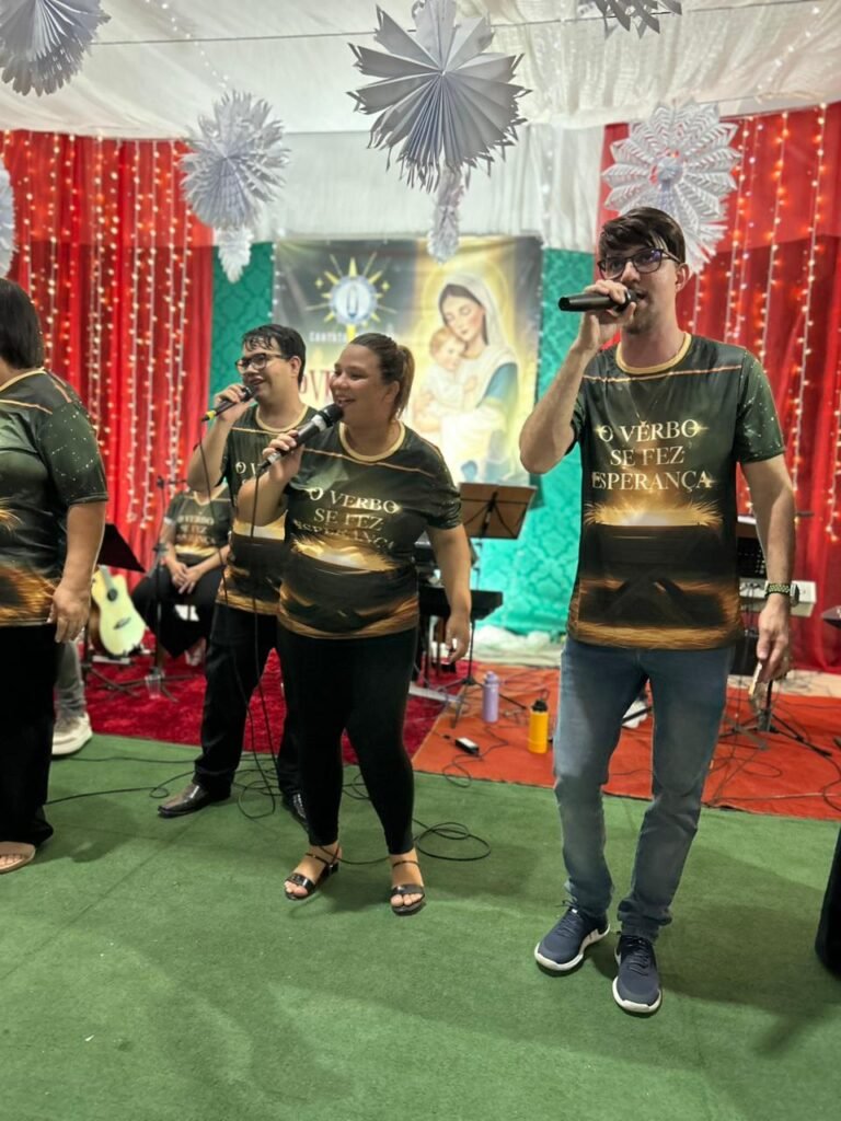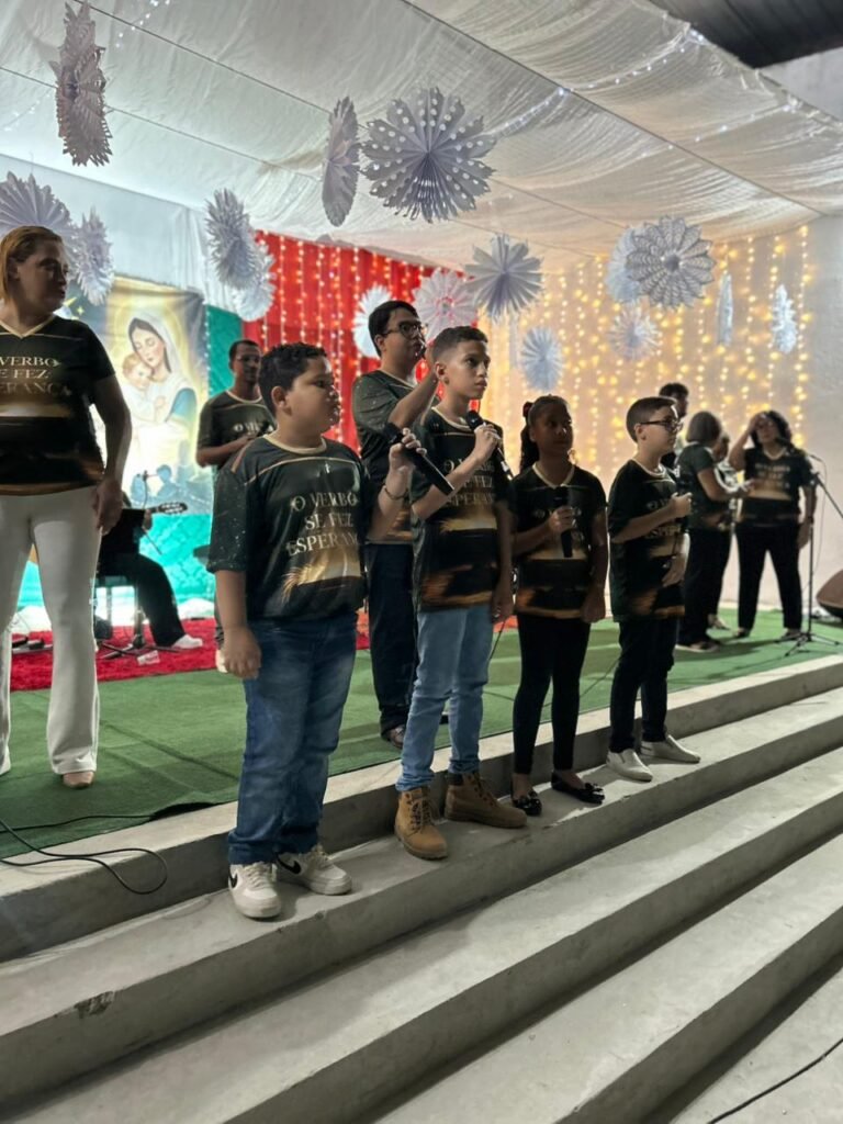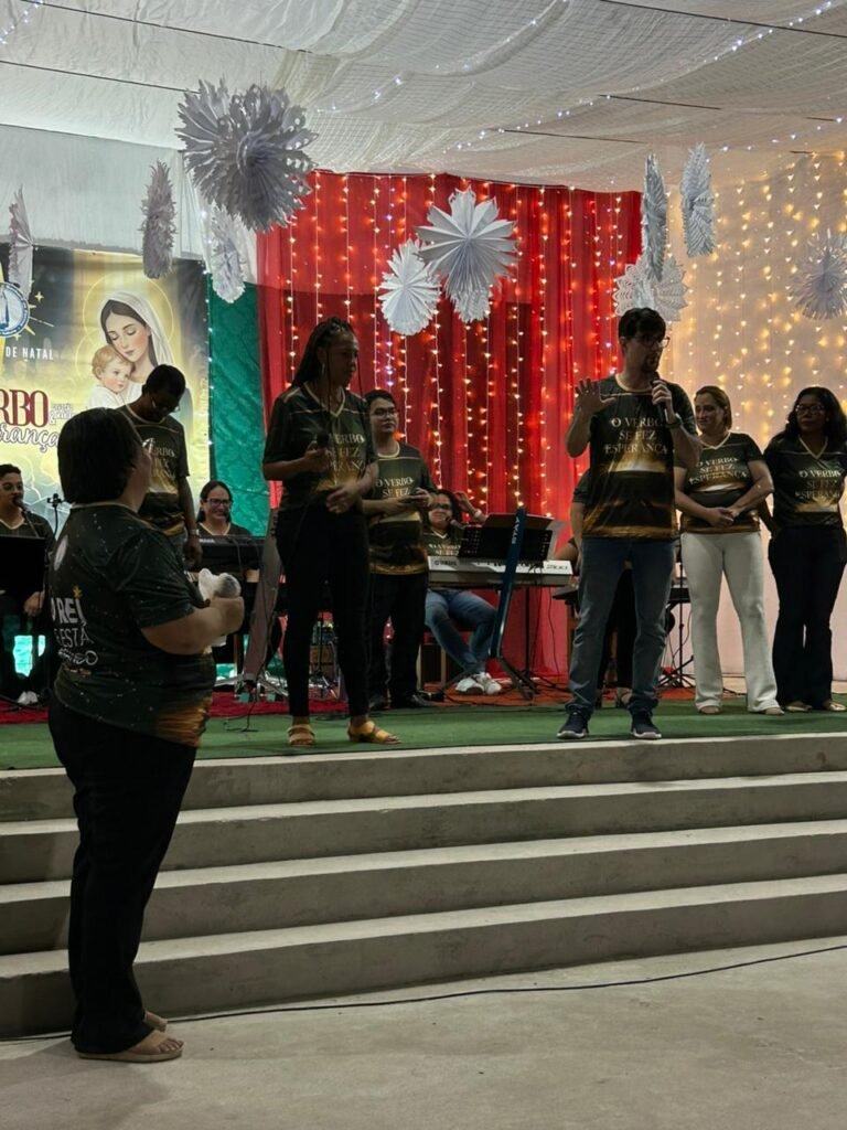 A noite do último sábado, 13 de dezembro, ficará marcada na memória e no coração da nossa comunidade paroquial. O nosso Centro Pastoral foi transformado em um grande cenáculo de fé para a realização da tradicional Cantata de Natal, que neste ano teve como tema “O Verbo se fez Esperança!”. Mais do que um espetáculo musical, a noite foi um profundo itinerário de fé que preparou a todos para celebrar o nascimento do Salvador.