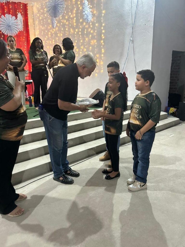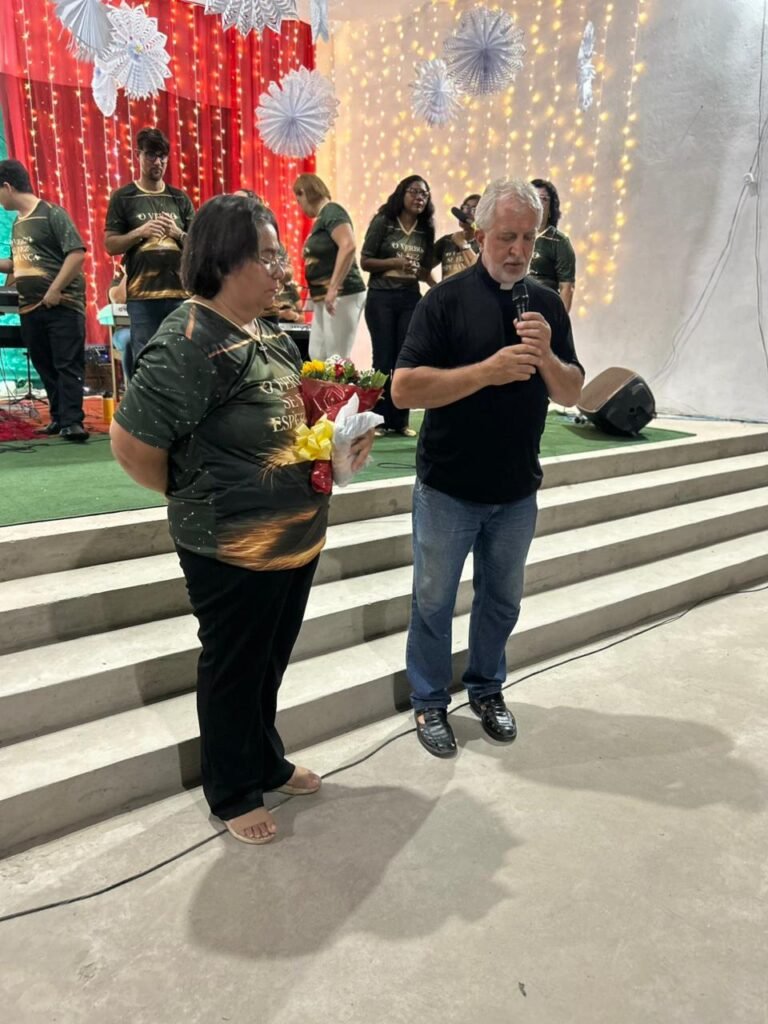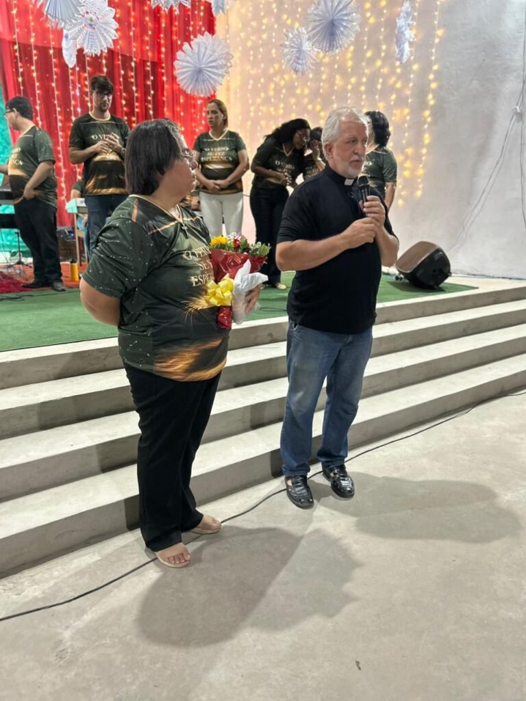 O nosso pároco, Cônego Nicolau, também recebeu homenagens e, com seu jeito paternal, agradeceu o empenho e a dedicação de todos os envolvidos. O testemunho espontâneo de uma paroquiana, que agradeceu pela evangelização e partilhou sua fé na “verdadeira esperança da vida, que é Jesus”, demonstrou como a mensagem da noite tocou os corações da assembleia.