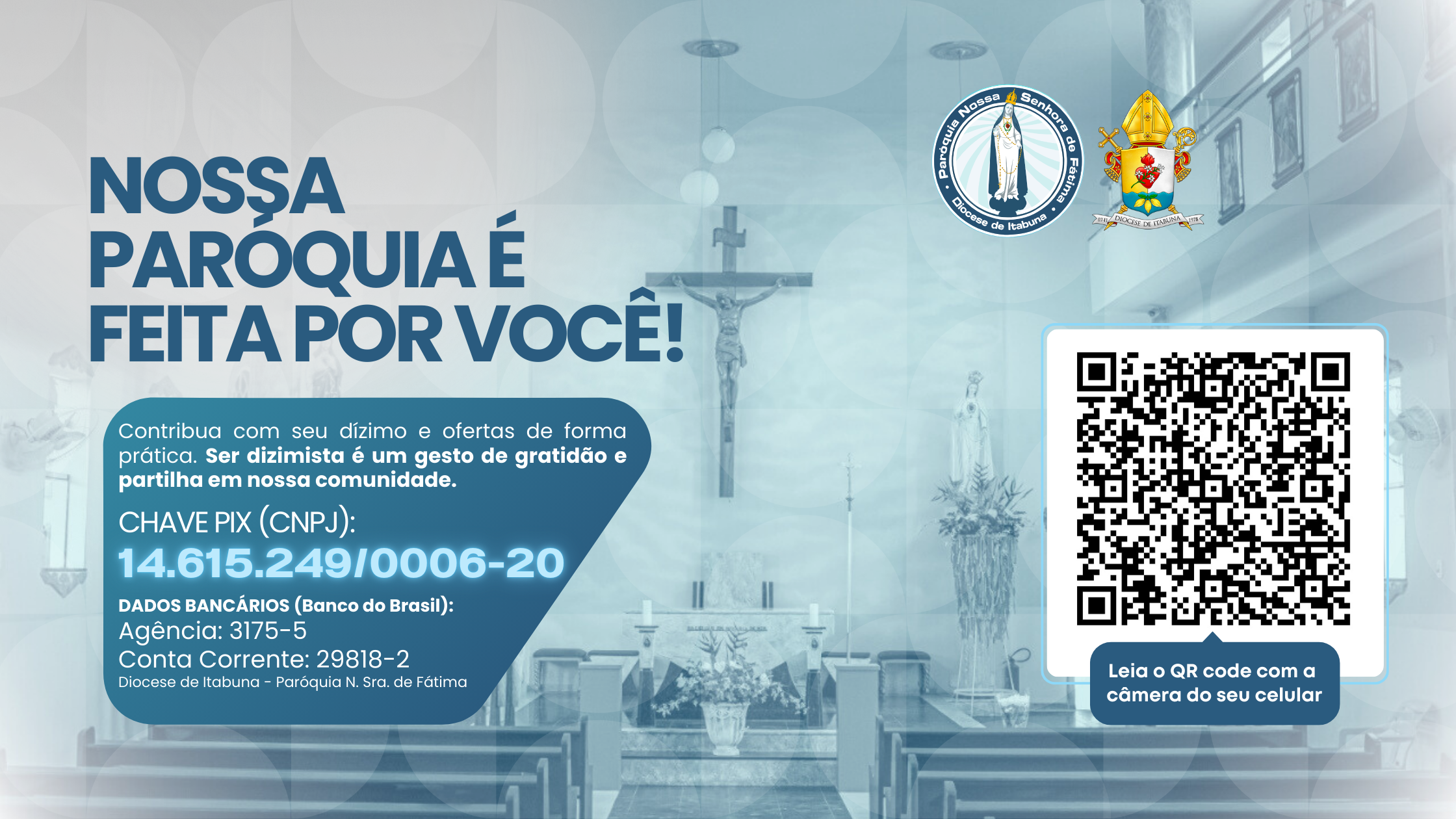 Contribua com a missão evangelizadora da Paróquia Nossa Senhora de Fátima em Itabuna. Saiba como ser um dizimista através do PIX e transferência bancária.