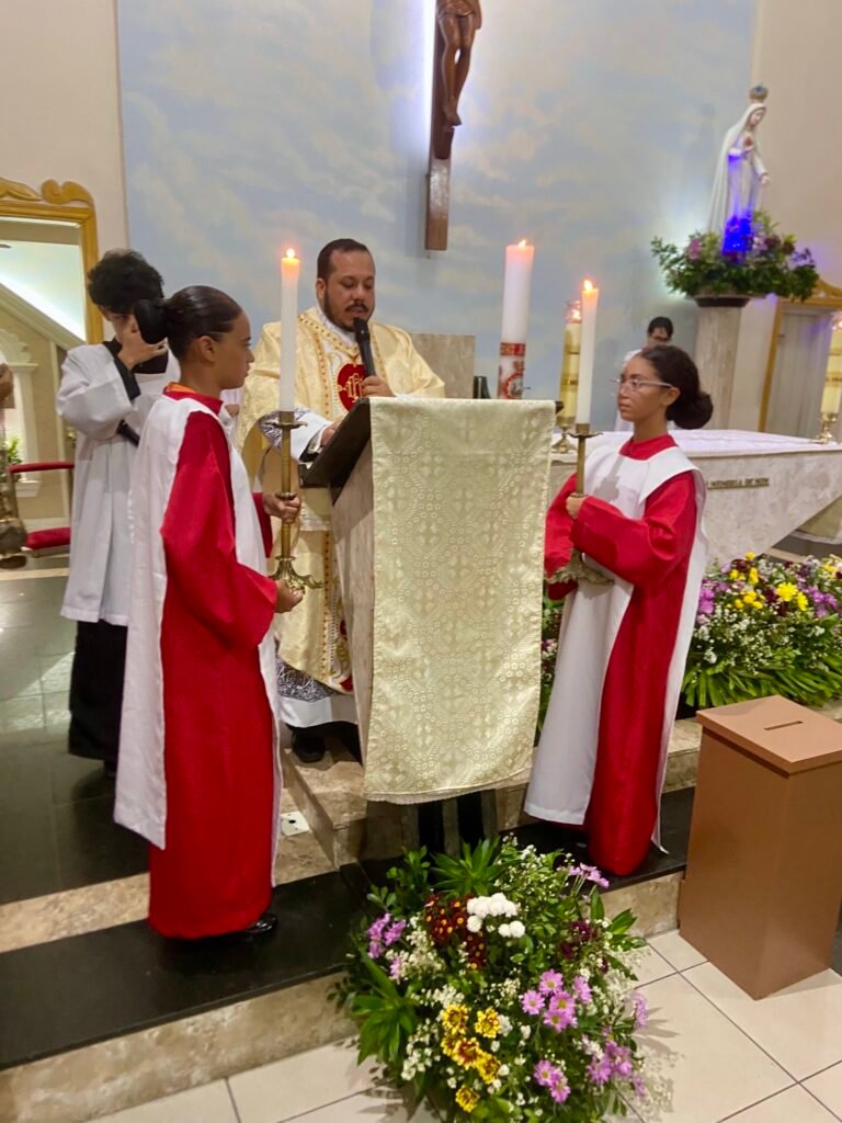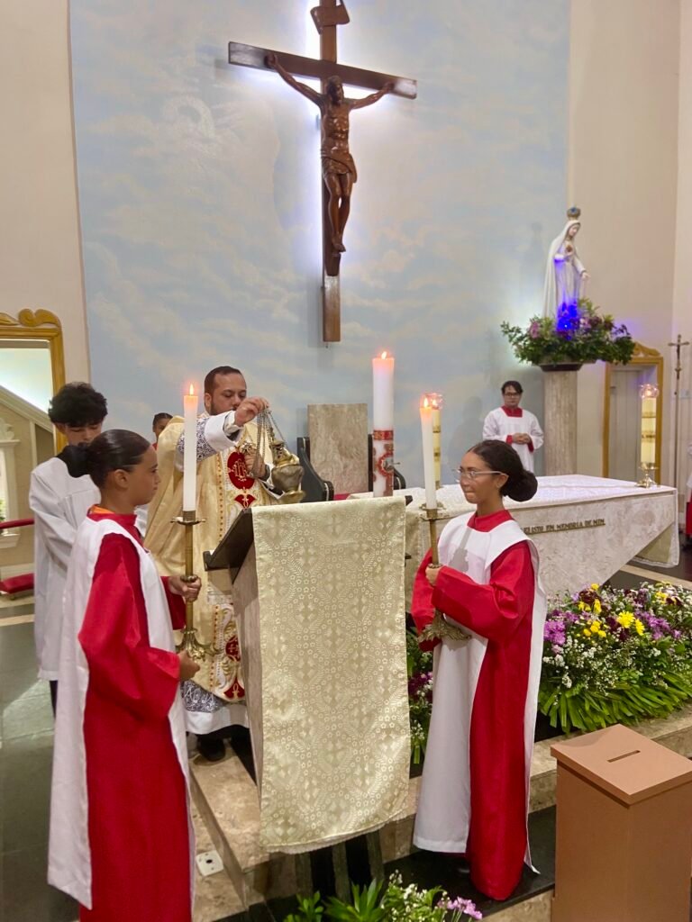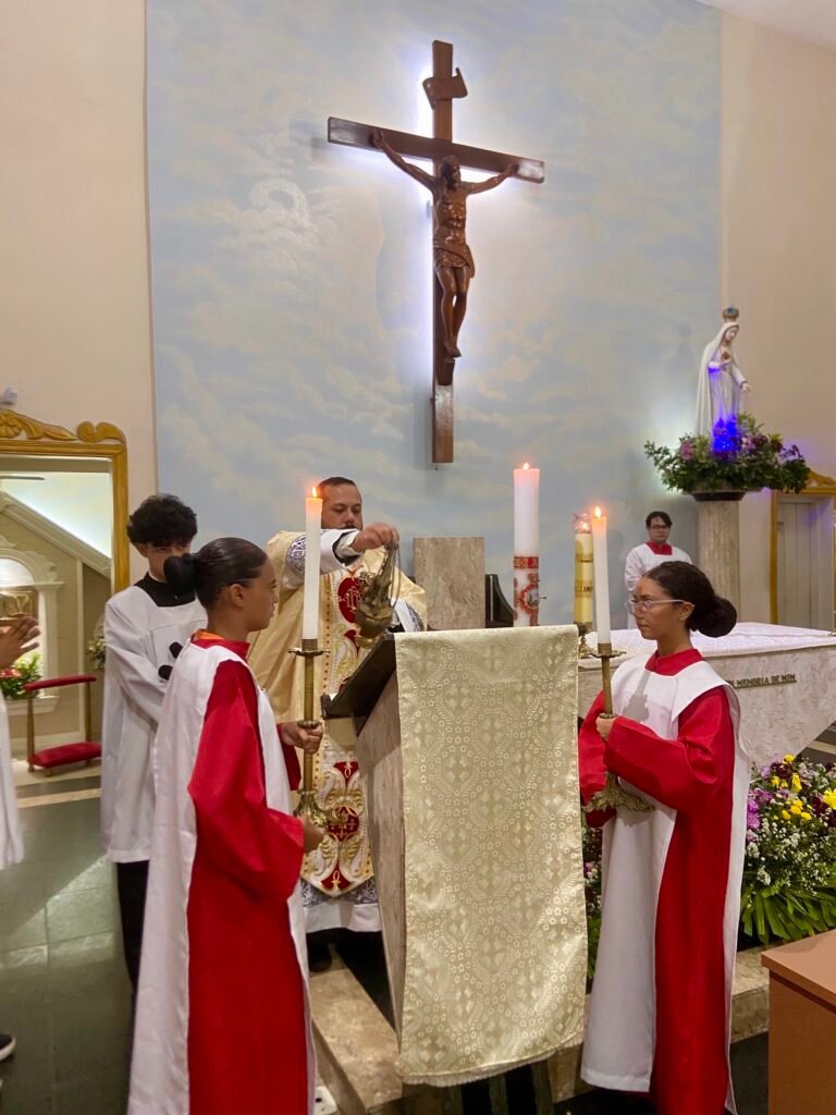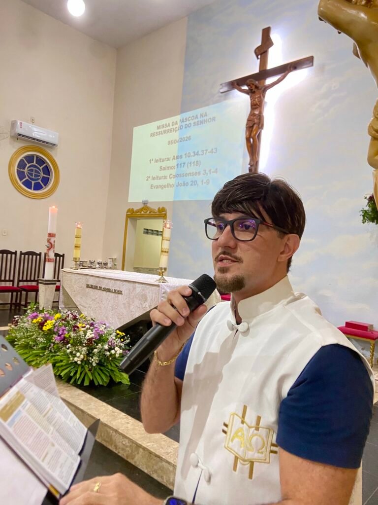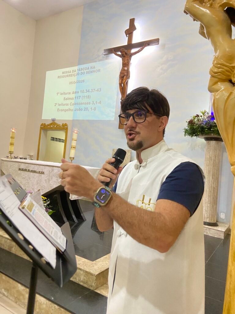 Na noite deste domingo, 5 de abril de 2026, a Paróquia Nossa Senhora de Fátima, em Itabuna, celebrou com profunda solenidade a Ressurreição de Jesus Cristo. A missa das 19h, presidida pelo Padre Muryllo Oliveira Reis (Pároco da Paróquia Nossa Senhora das Vitórias – Santa Cruz da Vitória), marcou o ápice do calendário litúrgico e o triunfo definitivo da Graça sobre o pecado.
