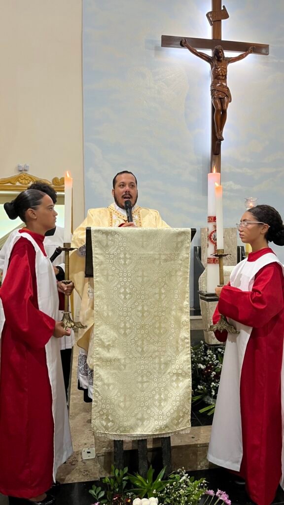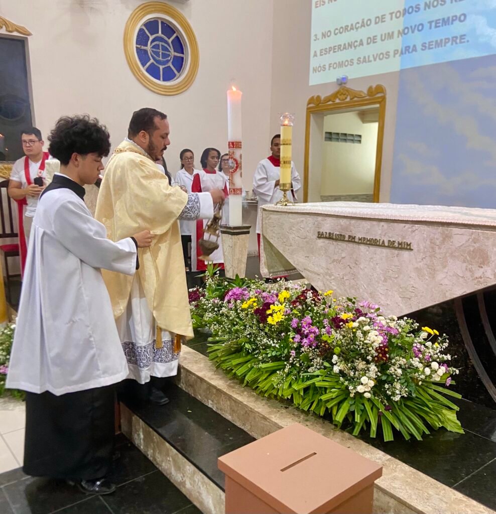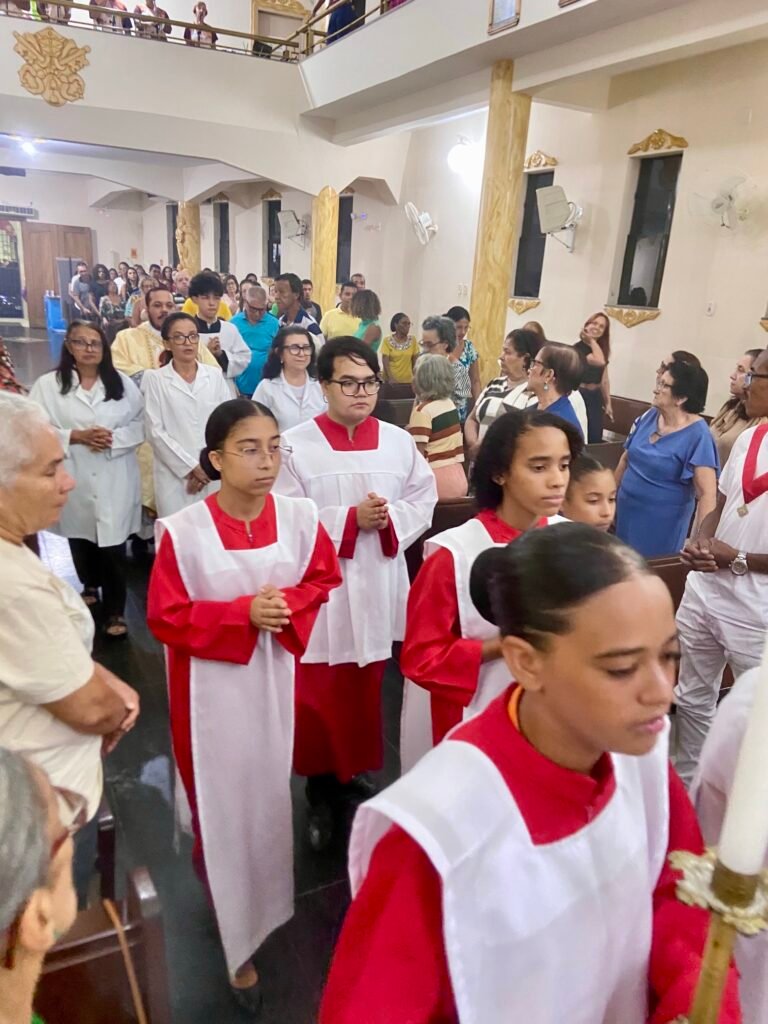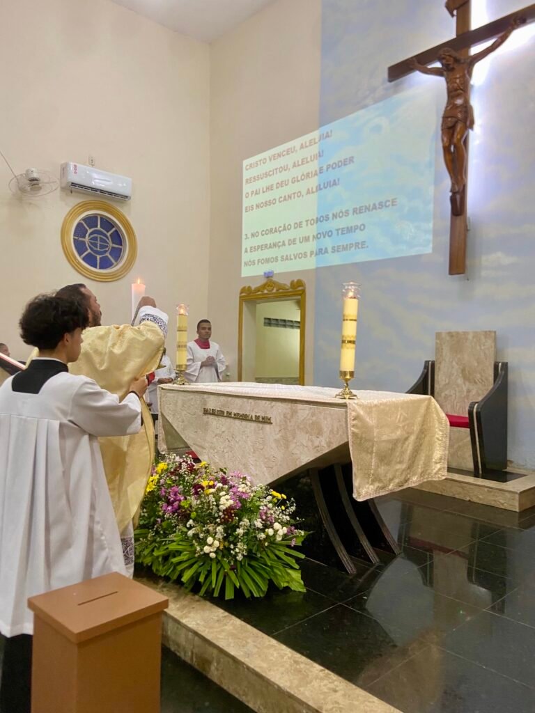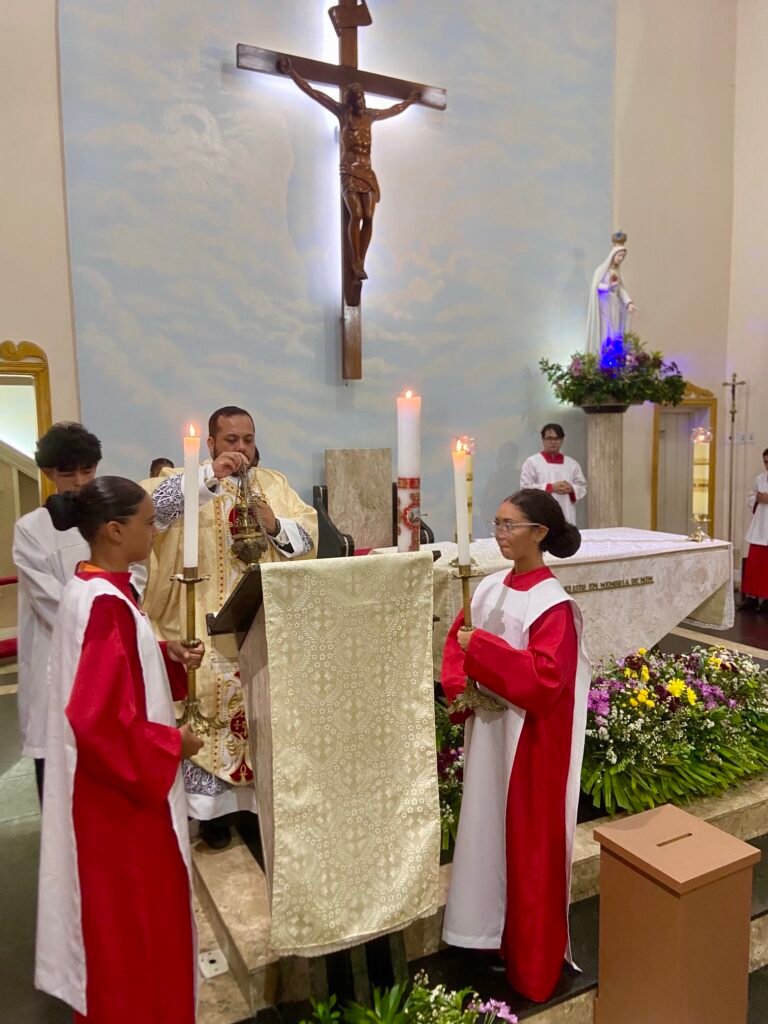 Na noite deste domingo, 5 de abril de 2026, a Paróquia Nossa Senhora de Fátima, em Itabuna, celebrou com profunda solenidade a Ressurreição de Jesus Cristo. A missa das 19h, presidida pelo Padre Muryllo Oliveira Reis (Pároco da Paróquia Nossa Senhora das Vitórias – Santa Cruz da Vitória), marcou o ápice do calendário litúrgico e o triunfo definitivo da Graça sobre o pecado.