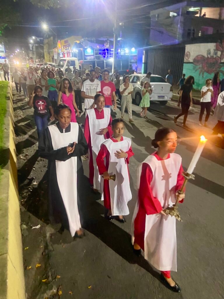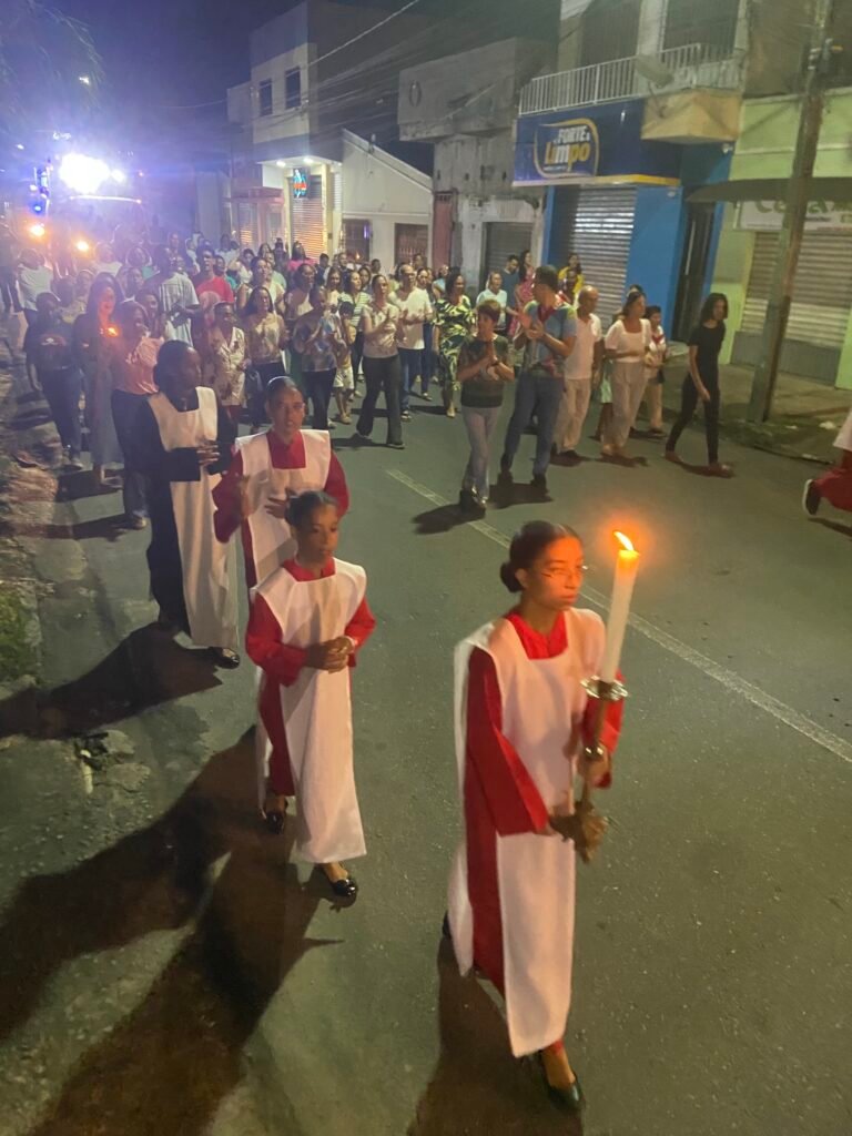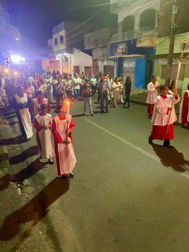 A celebração concluiu-se com um renovado compromisso de conversão. A verdadeira Páscoa, como ensinou o Padre Muryllo, realiza-se na transformação do “homem velho” em “homem novo”. Ao retornarem para seus lares após a procissão, os fiéis levaram consigo a promessa de que o Cristo Ressuscitado caminha à frente dos Seus, fazendo-se alimento e luz nas escuridões da vida.