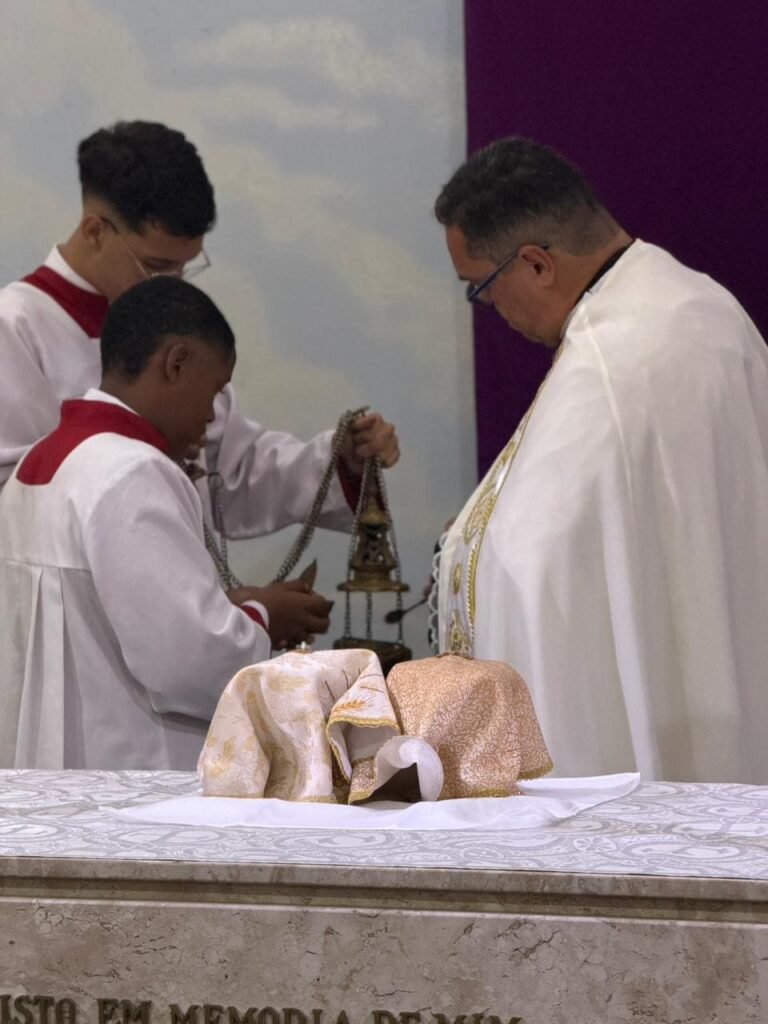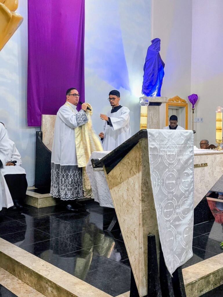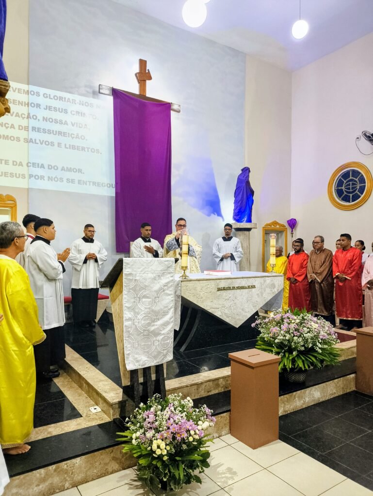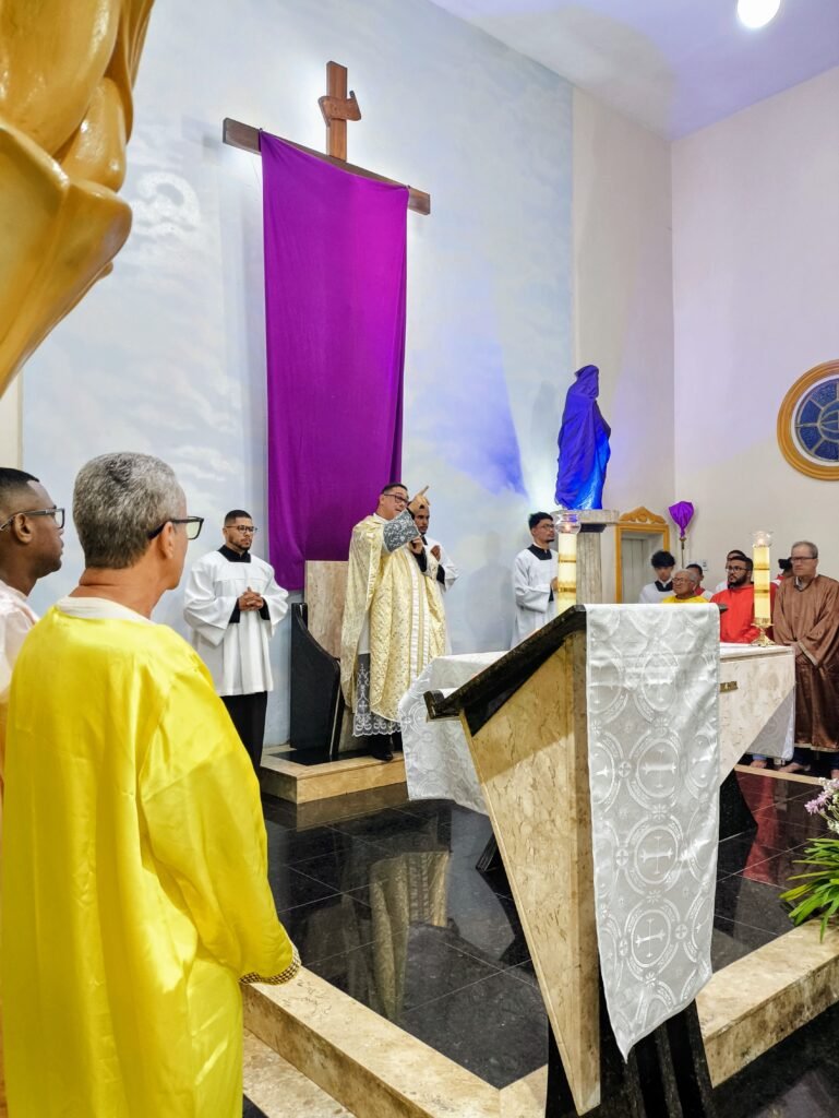 Na noite de ontem, Quinta-feira Santa (02/04), a Paróquia Nossa Senhora de Fátima, em Itabuna, abriu solenemente as portas do Tríduo Pascal. Com a Igreja Matriz repleta, a comunidade se reuniu para celebrar a Missa Vespertina da Ceia do Senhor, liturgia que faz memória da instituição da Santíssima Eucaristia, do Sacerdócio Católico e do Mandamento do Amor. Presidida pelo pároco, Pe. Vinicius Mascarenhas, a celebração foi marcada por profunda reverência litúrgica.