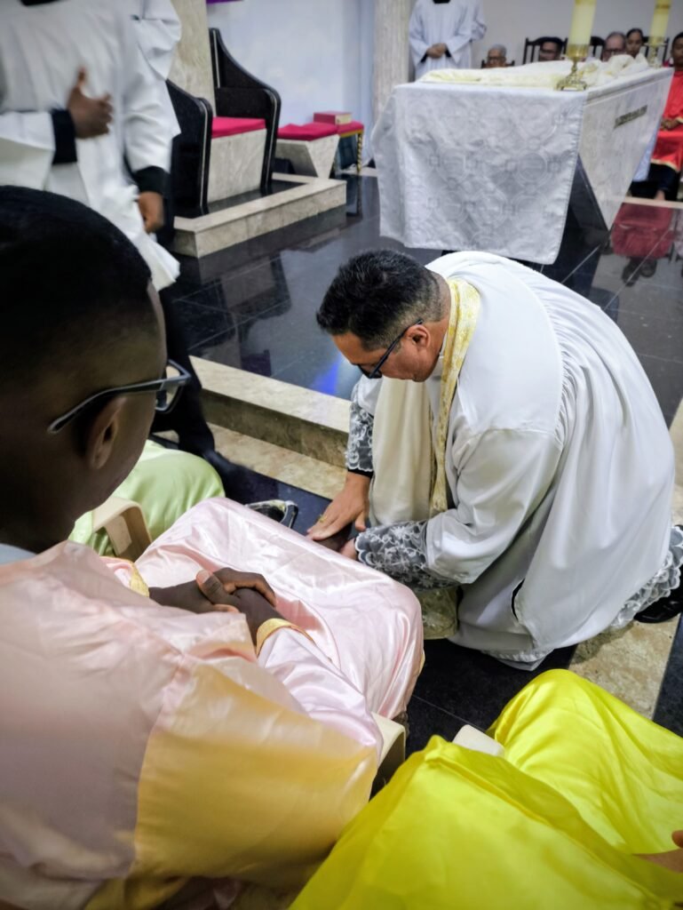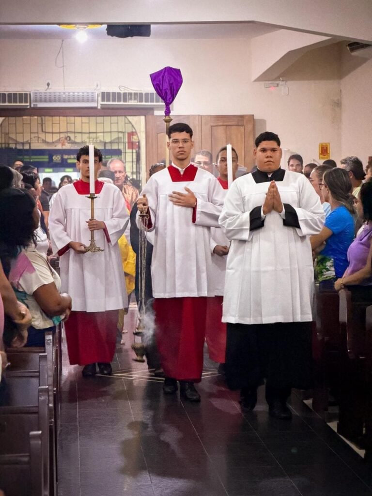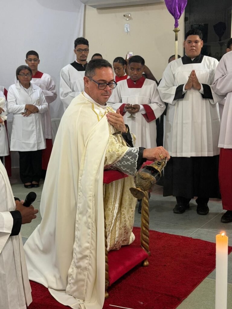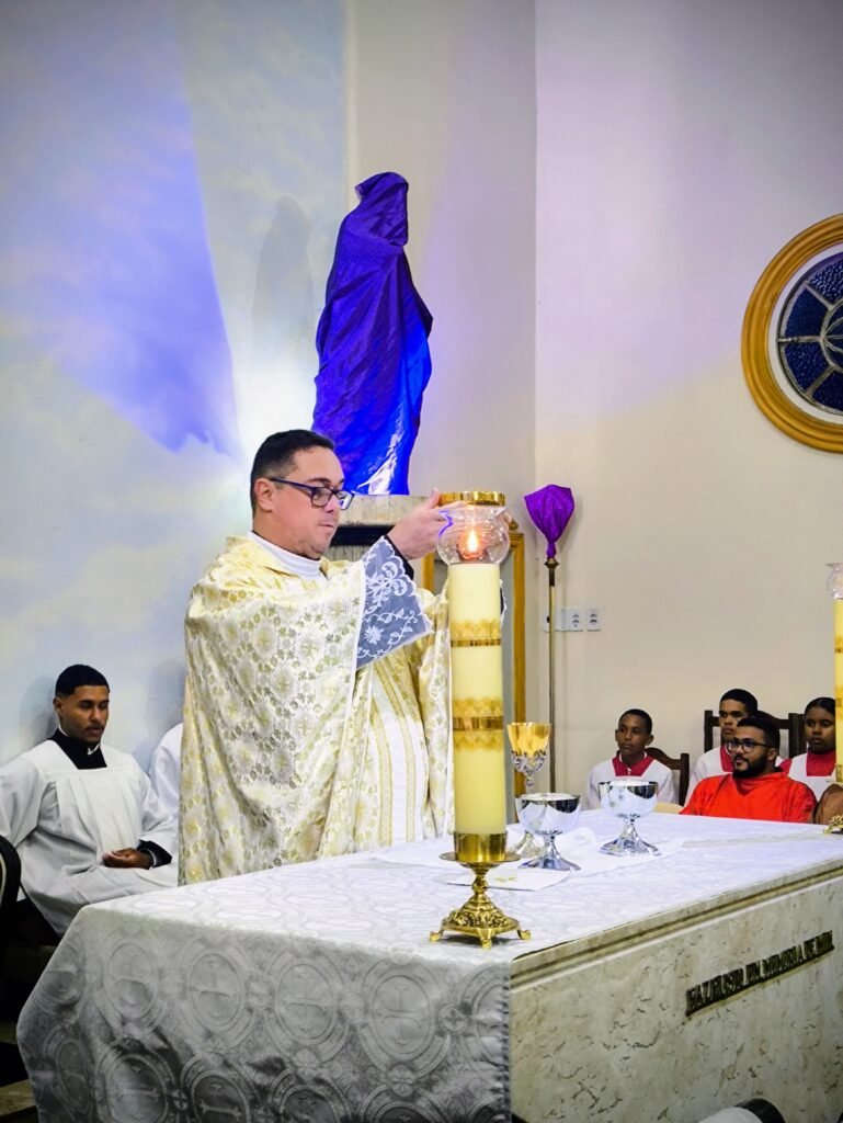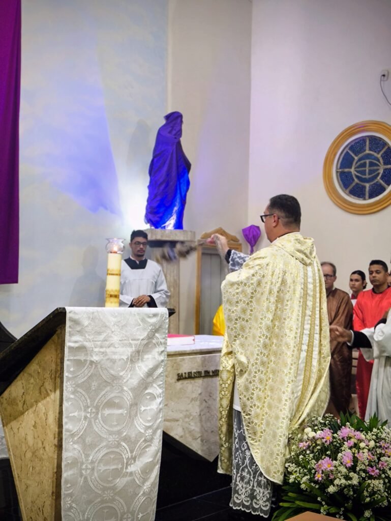 Na noite de ontem, Quinta-feira Santa (02/04), a Paróquia Nossa Senhora de Fátima, em Itabuna, abriu solenemente as portas do Tríduo Pascal. Com a Igreja Matriz repleta, a comunidade se reuniu para celebrar a Missa Vespertina da Ceia do Senhor, liturgia que faz memória da instituição da Santíssima Eucaristia, do Sacerdócio Católico e do Mandamento do Amor. Presidida pelo pároco, Pe. Vinicius Mascarenhas, a celebração foi marcada por profunda reverência litúrgica.