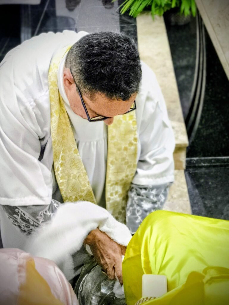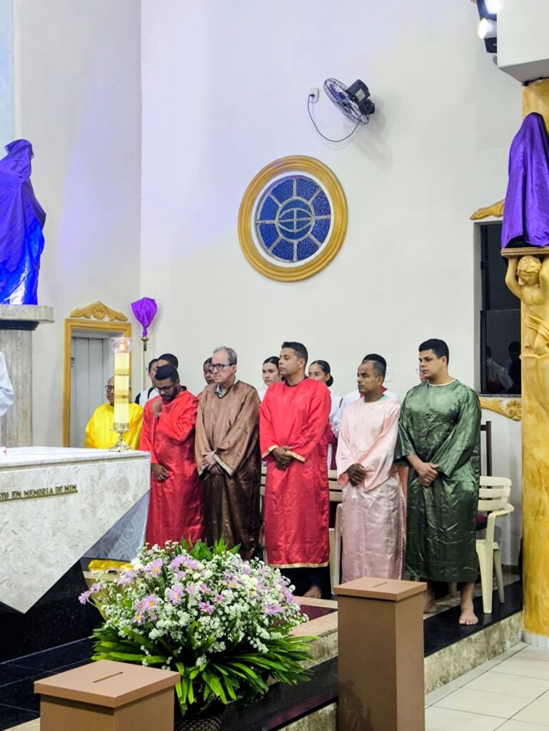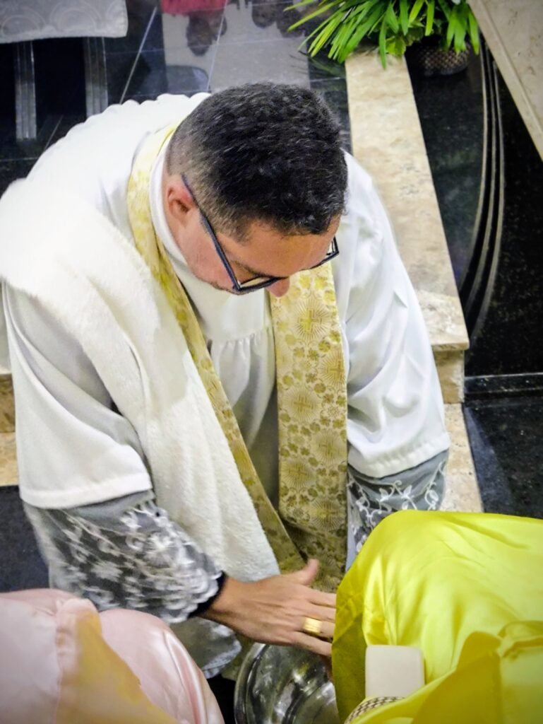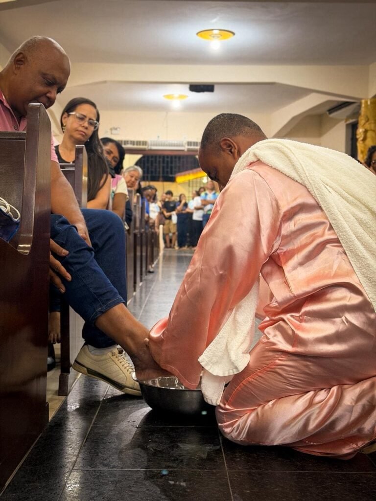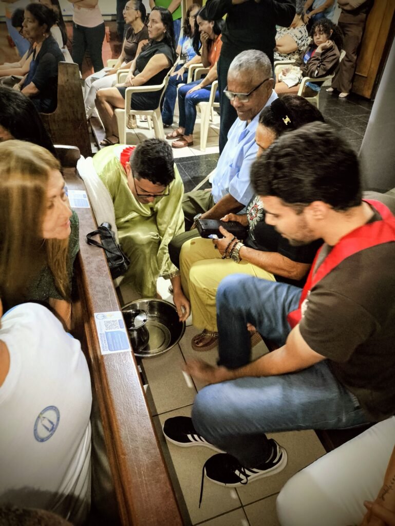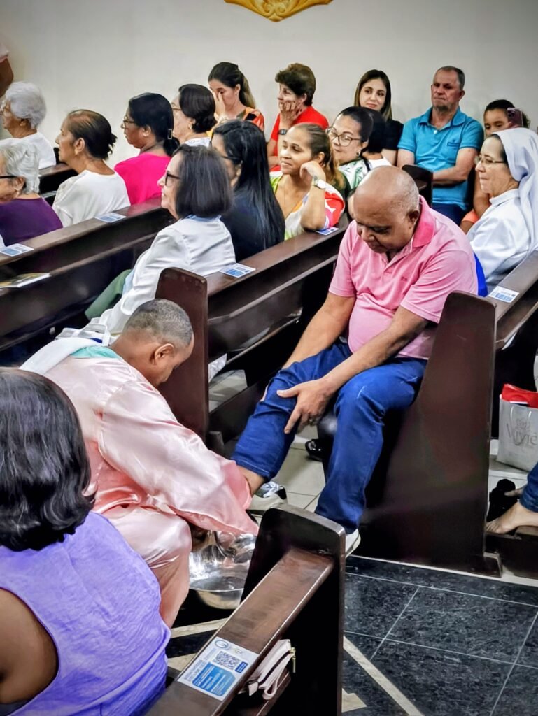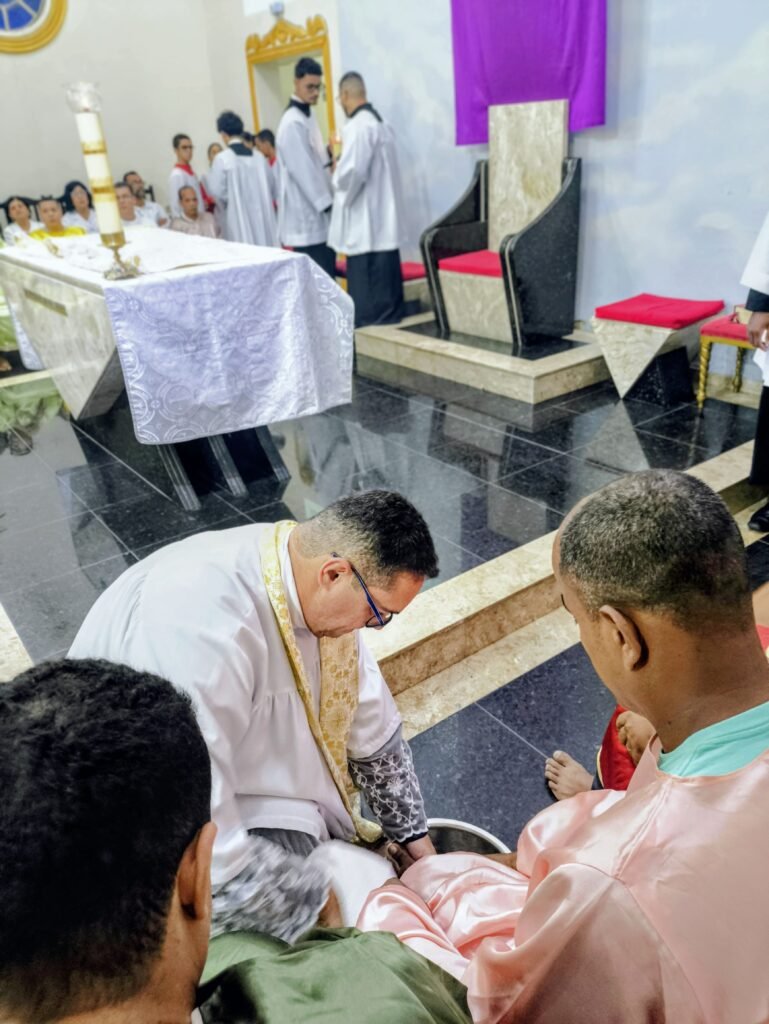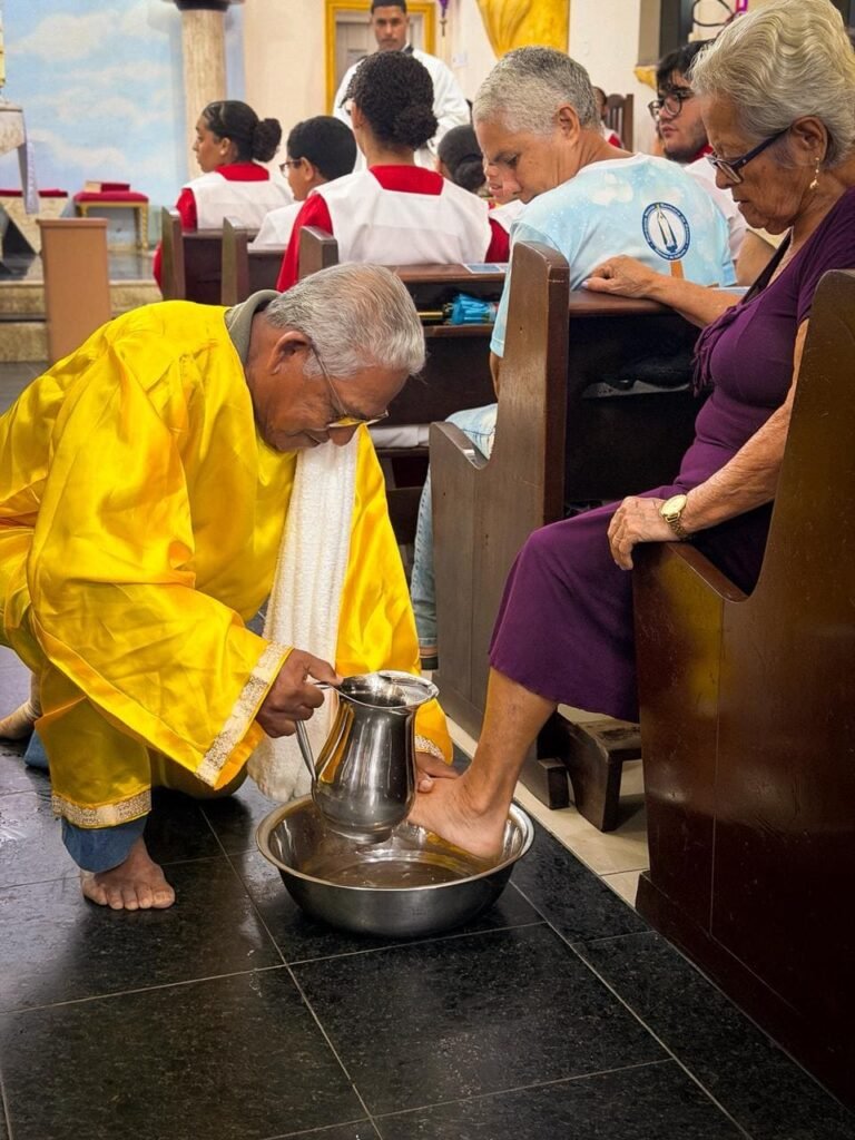 Porém, a grande surpresa litúrgica veio logo a seguir. Para ilustrar que o serviço não deve ficar restrito ao presbitério, o pároco enviou os 12 representantes até a assembleia, pedindo que cada um escolhesse uma pessoa nos bancos para também lavar os seus pés. A dinâmica comoveu a todos, materializando a exortação do padre: “Nós temos que reproduzir o gesto de Jesus no nosso próximo”. O gesto foi um apelo direto para que a paróquia vença o “egoísmo pastoral”, abrindo sempre espaço para acolher novos irmãos no serviço.