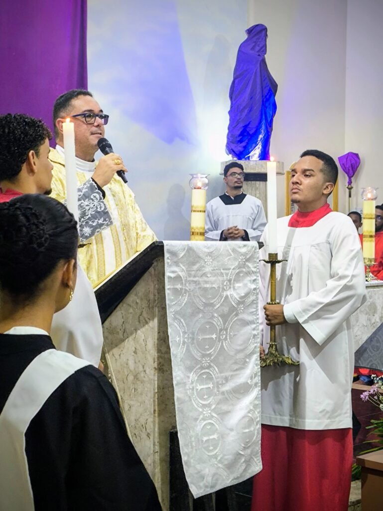 A noite também foi de ação de graças pelo Dia da Instituição do Sacerdócio. A comunidade rendeu homenagens e orações pela vida e vocação do Pe. Vinicius, que celebra seus 18 anos de entrega a Deus e à Igreja, guiando o rebanho local sob o lema Veritatis et Caritatis (Na Verdade e na Caridade).