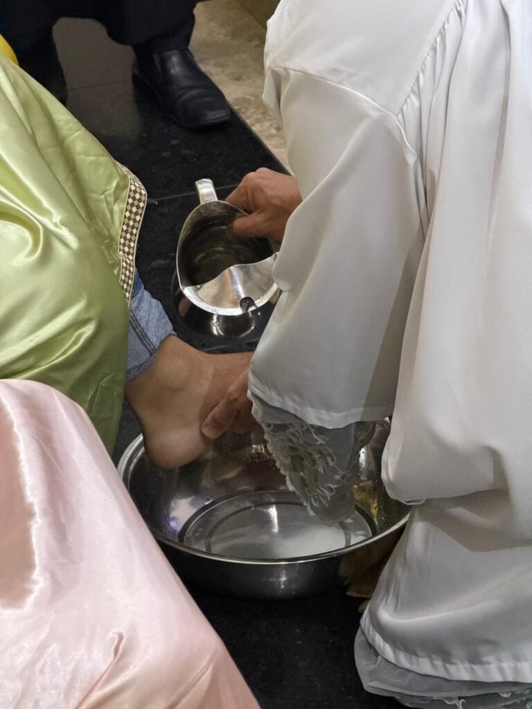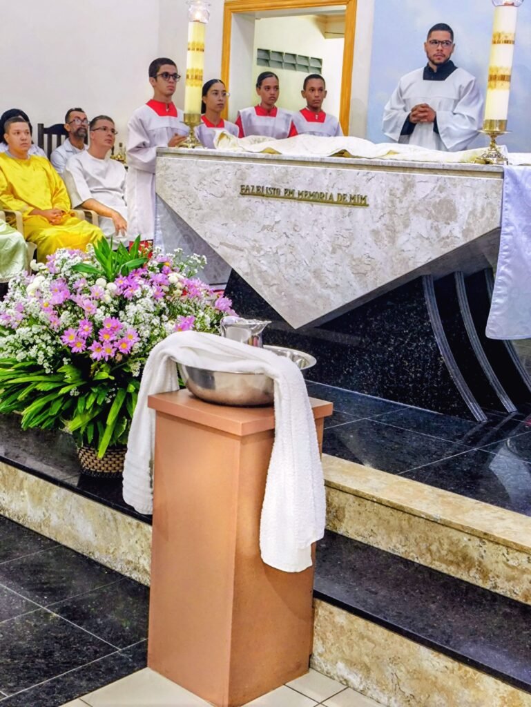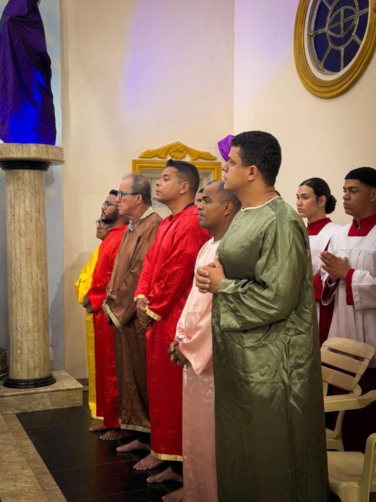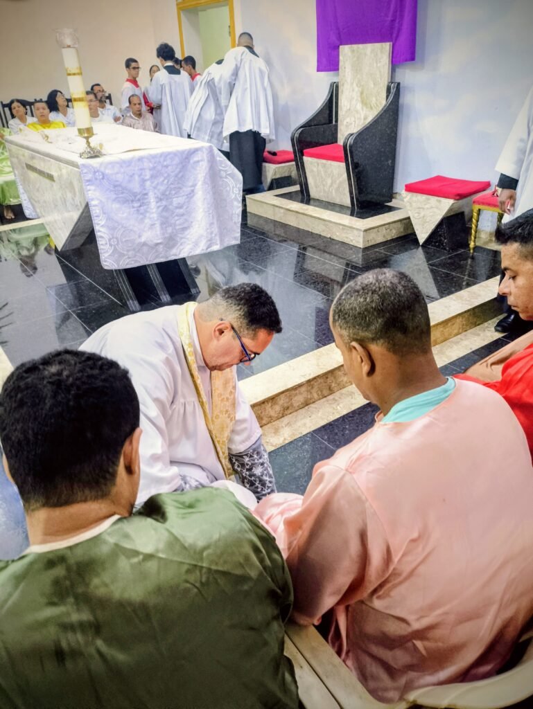 Porém, a grande surpresa litúrgica veio logo a seguir. Para ilustrar que o serviço não deve ficar restrito ao presbitério, o pároco enviou os 12 representantes até a assembleia, pedindo que cada um escolhesse uma pessoa nos bancos para também lavar os seus pés. A dinâmica comoveu a todos, materializando a exortação do padre: “Nós temos que reproduzir o gesto de Jesus no nosso próximo”. O gesto foi um apelo direto para que a paróquia vença o “egoísmo pastoral”, abrindo sempre espaço para acolher novos irmãos no serviço.