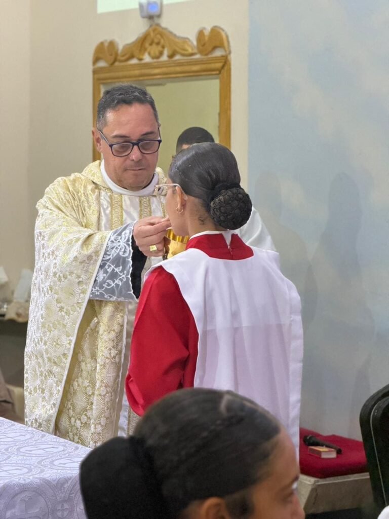 A celebração teve início com uma Liturgia da Palavra atenta e fervorosa. Em sua homilia, Pe. Vinicius destacou a riqueza das leituras que narram desde a Páscoa judaica até a tradição eucarística ensinada por São Paulo. “A gente viaja nas leituras. Memória é trazer o fato do passado para o presente, vivendo como se estivesse acontecendo agora”, explicou o pároco.