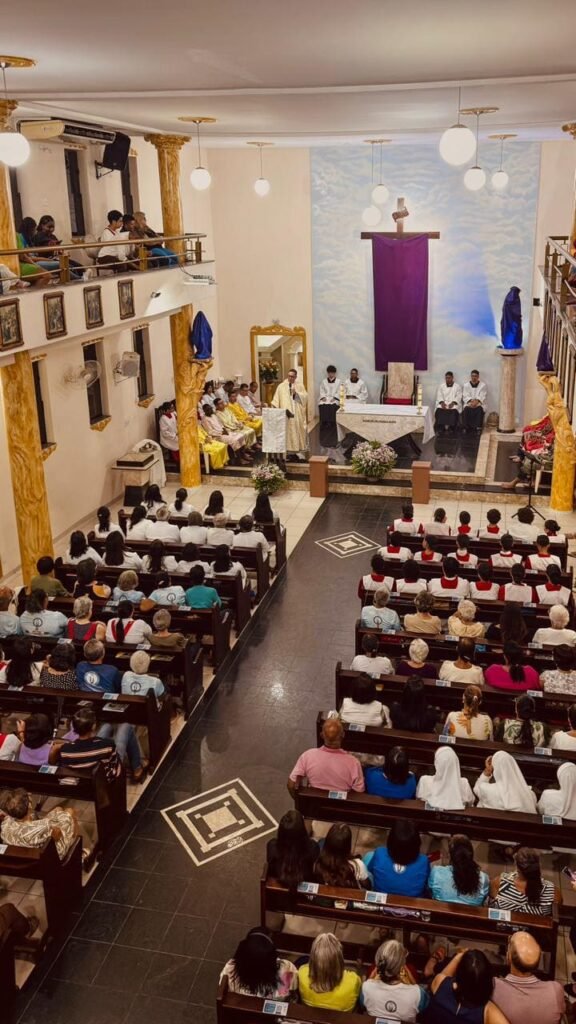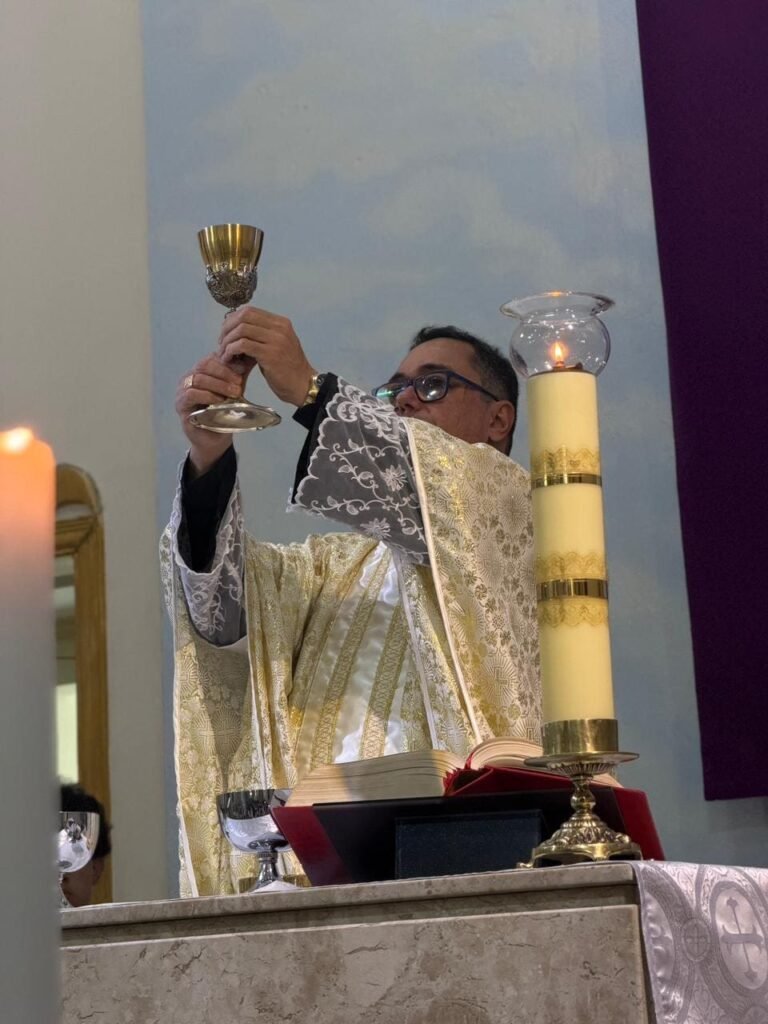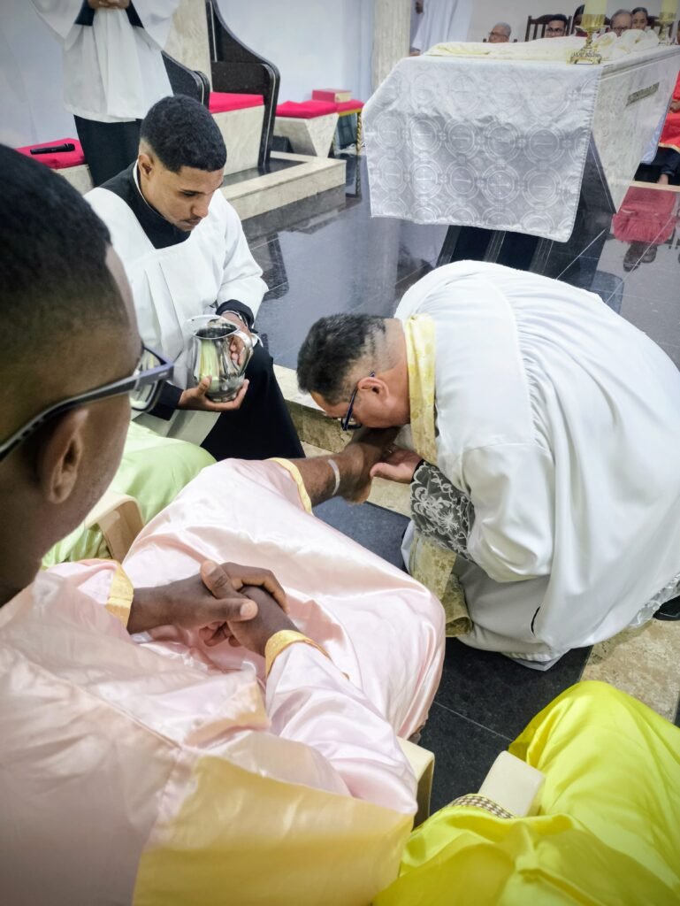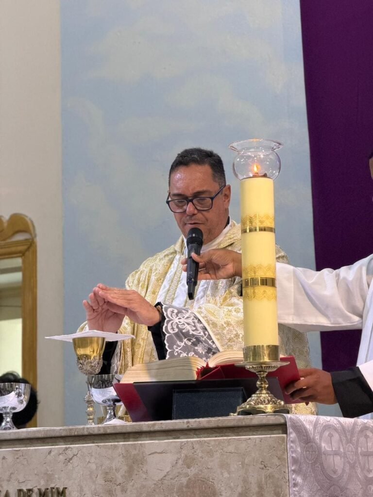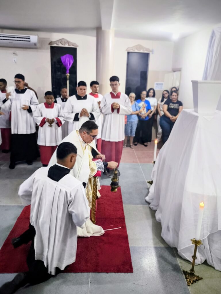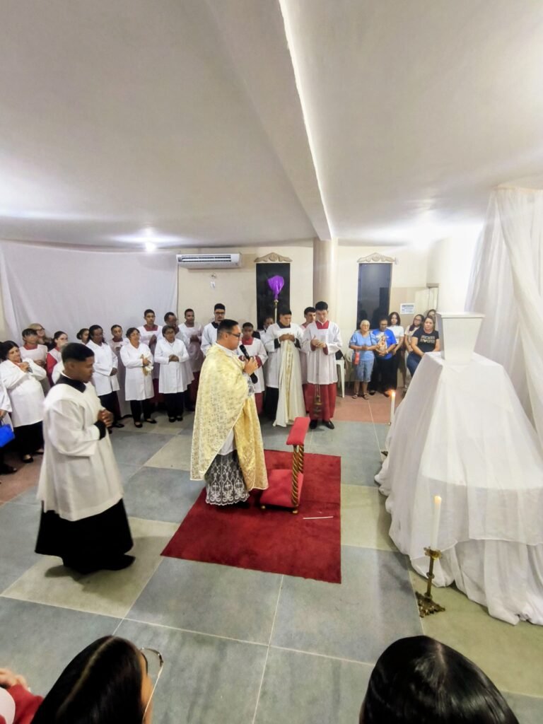 Na noite de ontem, Quinta-feira Santa (02/04), a Paróquia Nossa Senhora de Fátima, em Itabuna, abriu solenemente as portas do Tríduo Pascal. Com a Igreja Matriz repleta, a comunidade se reuniu para celebrar a Missa Vespertina da Ceia do Senhor, liturgia que faz memória da instituição da Santíssima Eucaristia, do Sacerdócio Católico e do Mandamento do Amor. Presidida pelo pároco, Pe. Vinicius Mascarenhas, a celebração foi marcada por profunda reverência litúrgica.