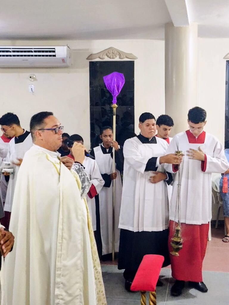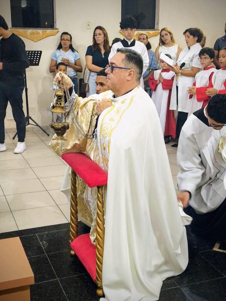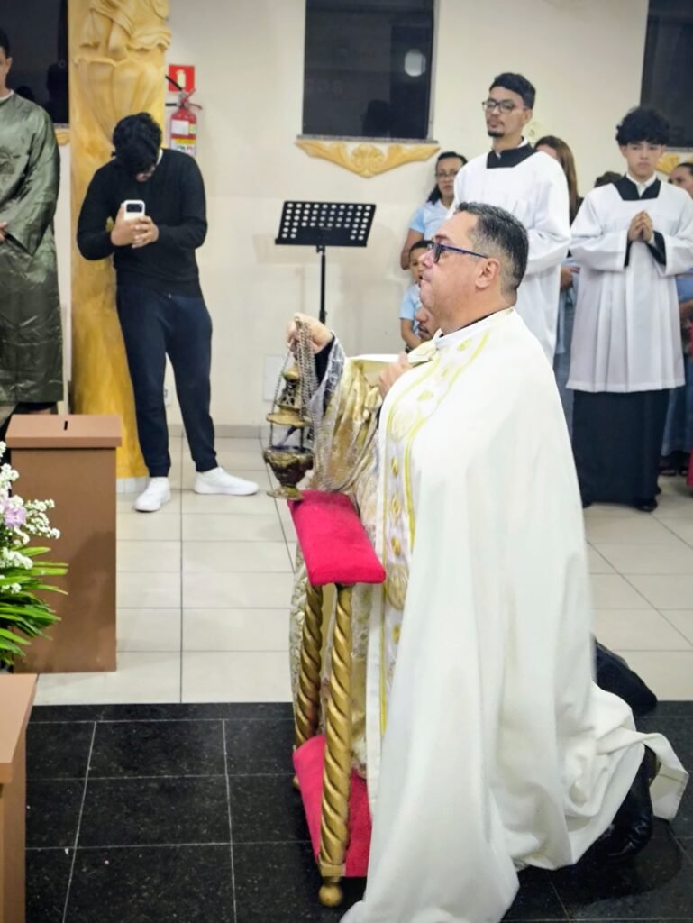A noite também foi de ação de graças pelo Dia da Instituição do Sacerdócio. A comunidade rendeu homenagens e orações pela vida e vocação do Pe. Vinicius, que celebra seus 18 anos de entrega a Deus e à Igreja, guiando o rebanho local sob o lema Veritatis et Caritatis (Na Verdade e na Caridade).
